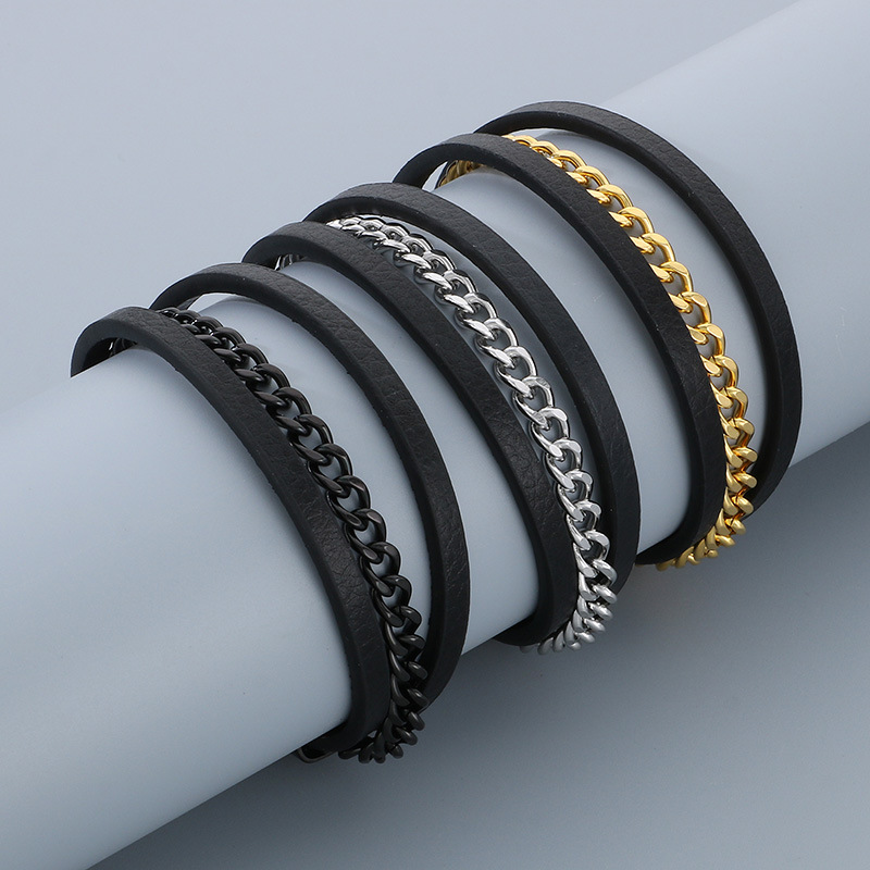 - PU Schnur Armbänder, PU Leder, mit Titanstahl