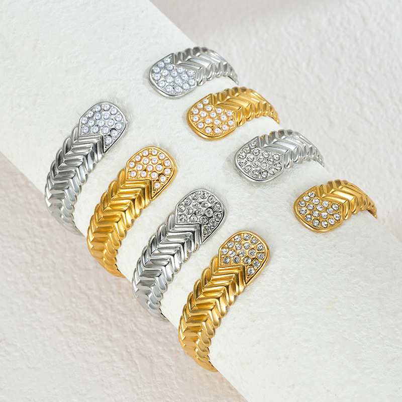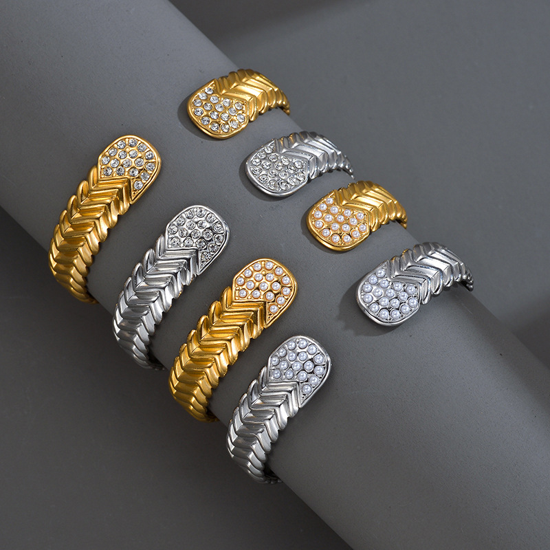 - Edelstahl Armreif, 304 Edelstahl, mit Strass