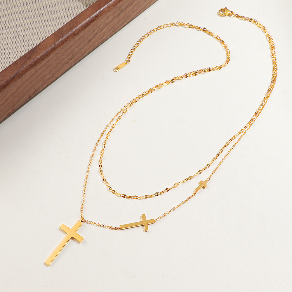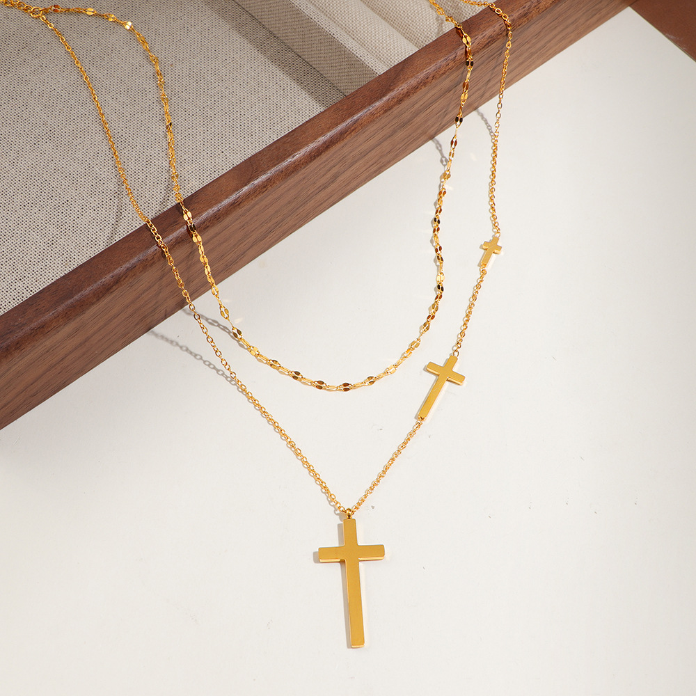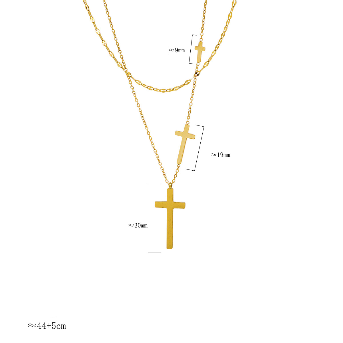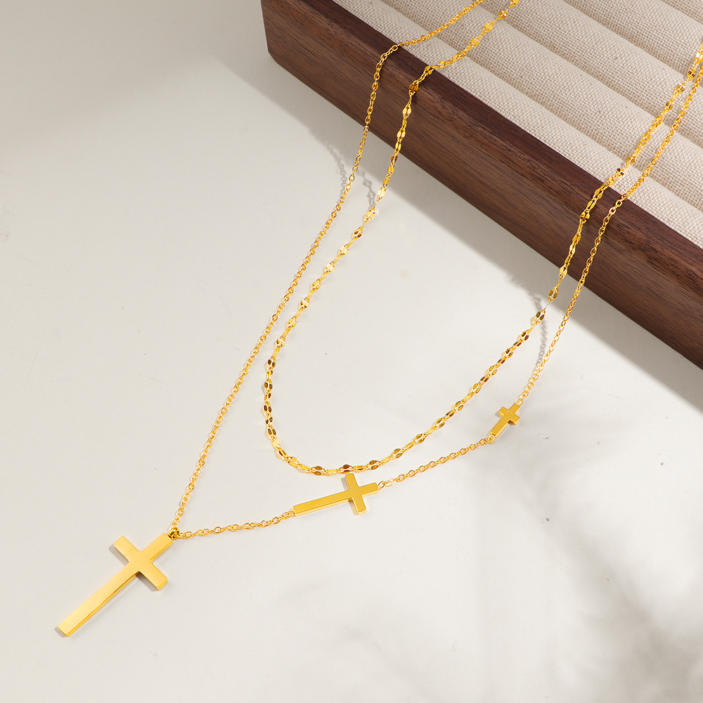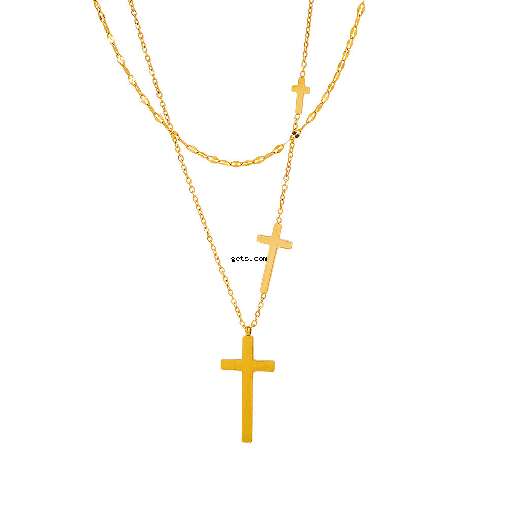 304 Edelstahl Halskette, mit Verlängerungskettchen von 5cm, Kreuz, goldfarben plattiert, Doppelschicht & unisex & Oval-Kette, Länge:ca. 44 cm, verkauft von PC