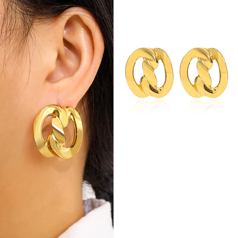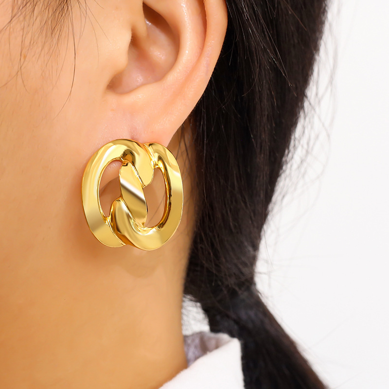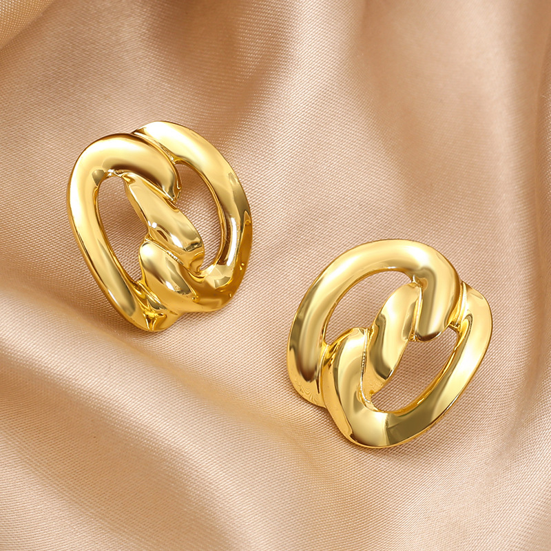 304 Edelstahl Ohrstecker, goldfarben plattiert, für Frau & hohl, 23x25mm, verkauft von Paar