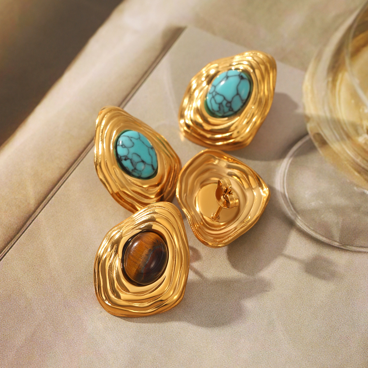 - Edelstein Ohrringe, Naturstein, mit Zinklegierung