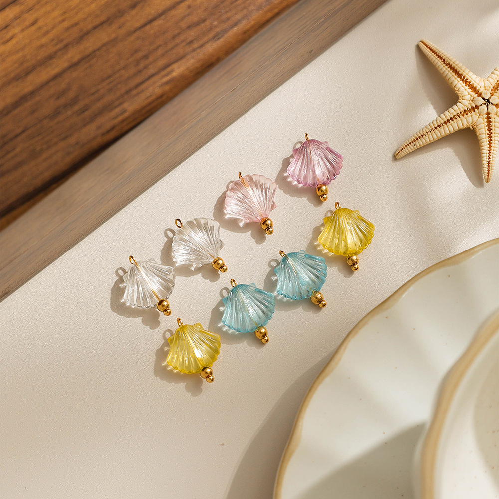 Acryl Anhänger, 304 Edelstahl, mit Acryl, Schale, goldfarben plattiert, DIY, keine, 10PCs/Tasche, verkauft von Tasche