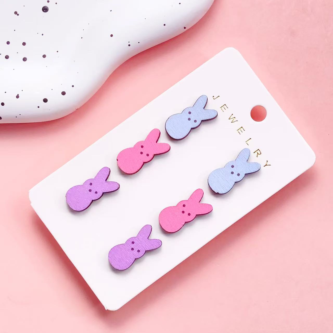 Acryl Ohrstecker Set, mit Holz, Hase, drei Stücke & verschiedene Stile für Wahl & für Frau, 8x16mm, verkauft von setzen