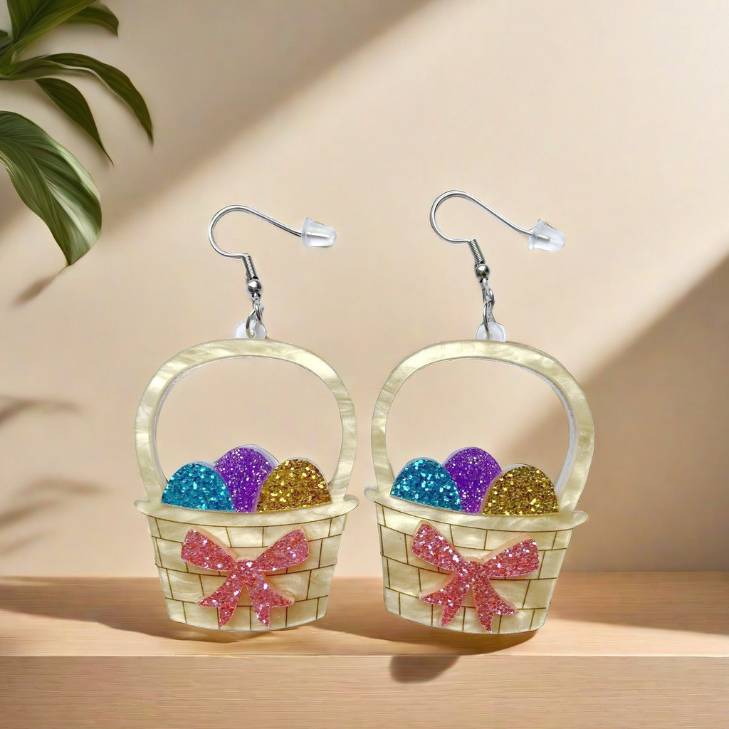 Acryl Tropfen Ohrring, Korb, Drucken, Modeschmuck & verschiedene Stile für Wahl & für Frau, 35x49mm, verkauft von Paar