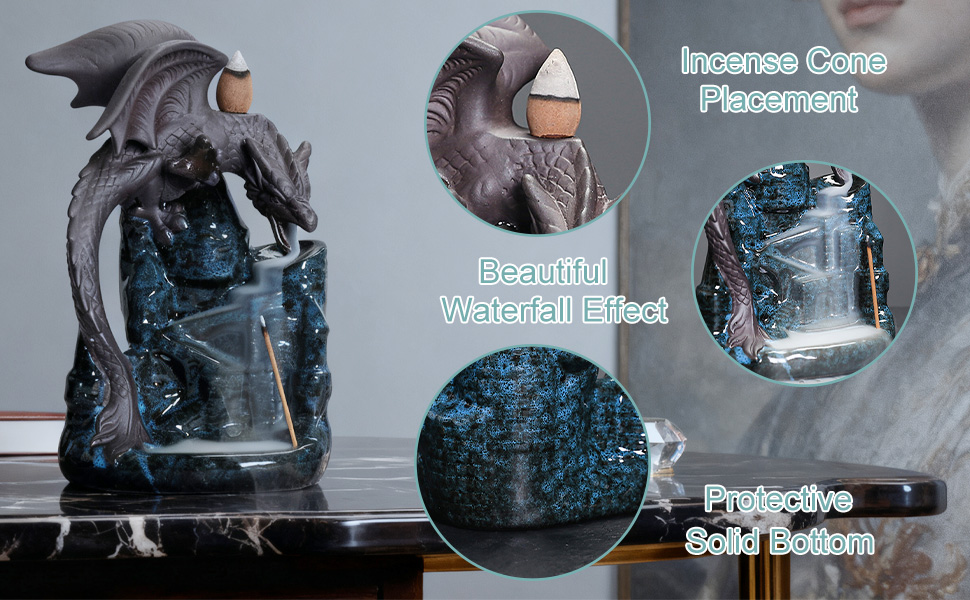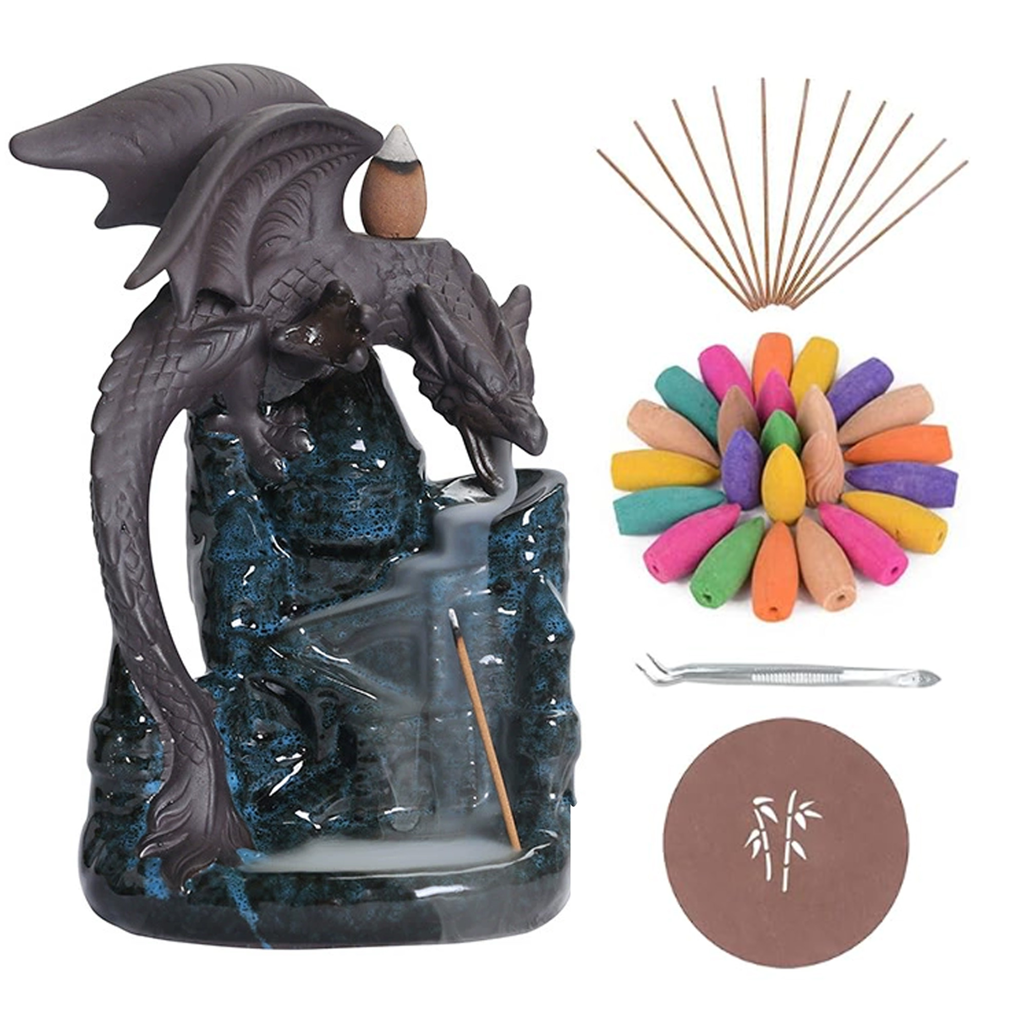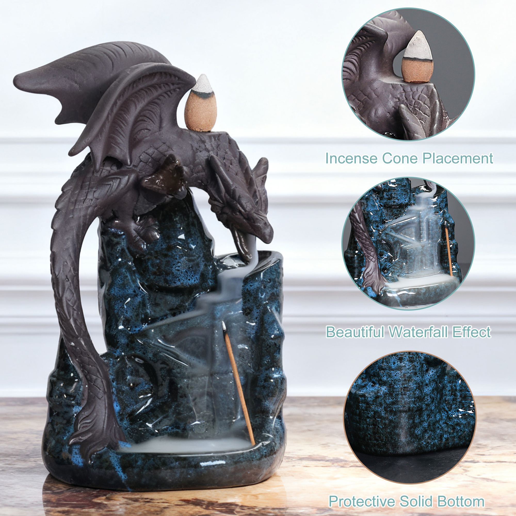 - Backflow Weihrauchbrenner Weihrauchkegel Sticks Holder Home Decor, Porzellan, Drachen