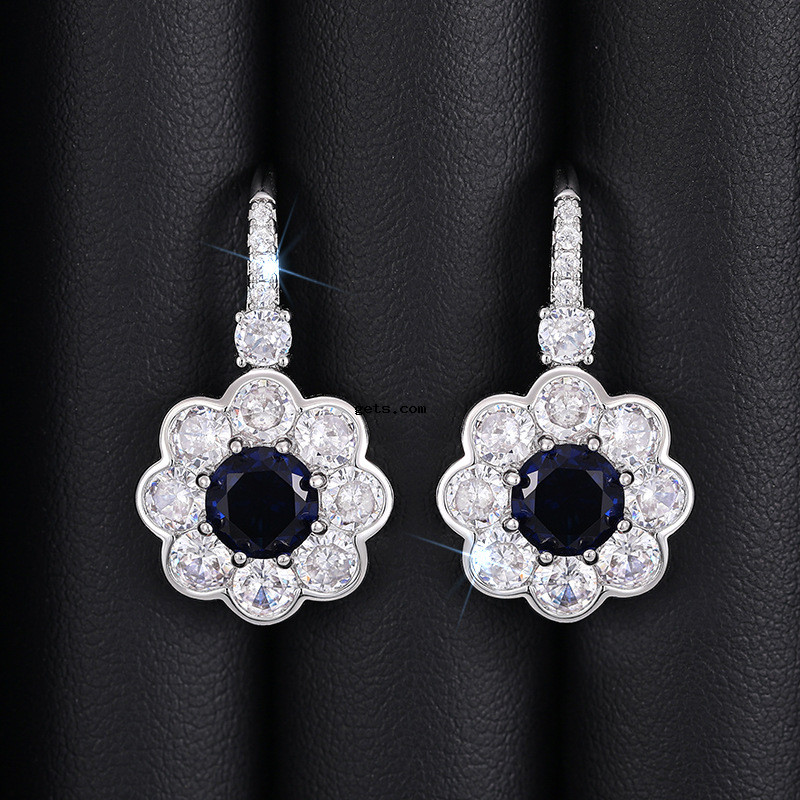 Befestiger Zirkonia Messing Ohrring, Blume, plattiert, Modeschmuck & Micro pave Zirkonia & für Frau, verkauft von Paar