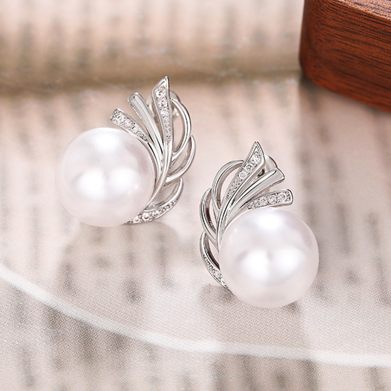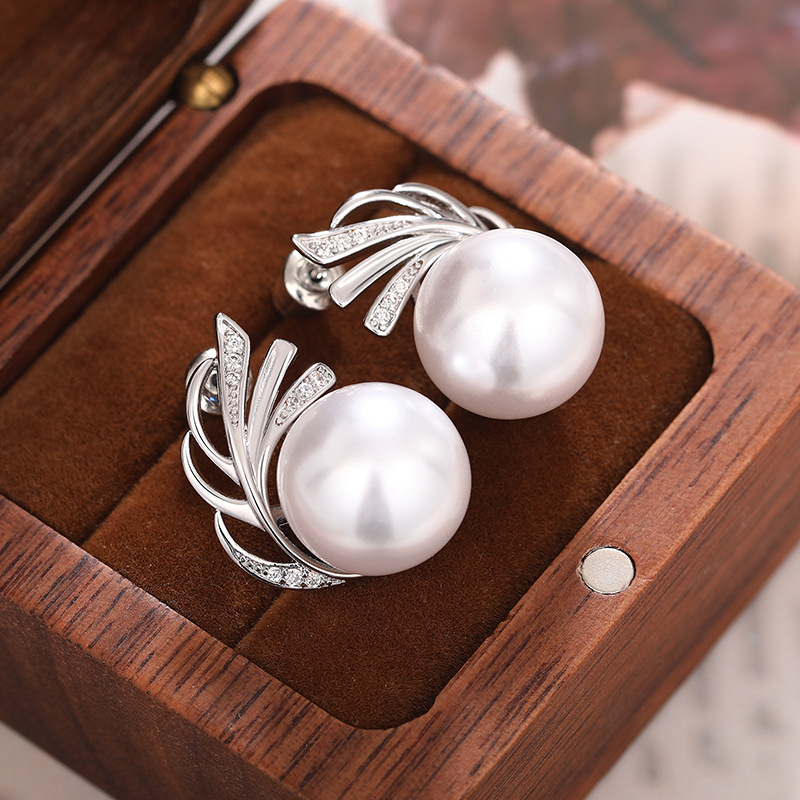 Befestiger Zirkonia Messing Ohrring, mit Natürliche kultivierte Süßwasserperlen & Glas, plattiert, Micro pave Zirkonia & für Frau, Platin Farbe, 38x14mm, verkauft von Paar