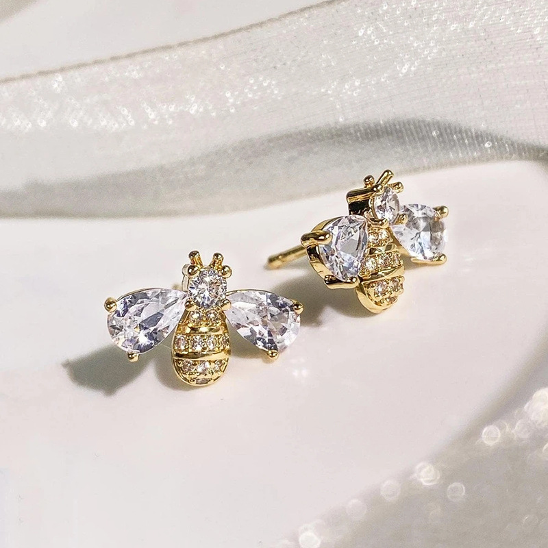 Befestiger Zirkonia Messing Ohrring, Biene, plattiert, Modeschmuck & Micro pave Zirkonia & für Frau, verkauft von Paar