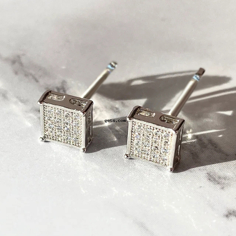 Befestiger Zirkonia Messing Ohrring, Quadrat, plattiert, Modeschmuck & Micro pave Zirkonia & für Frau, verkauft von Paar