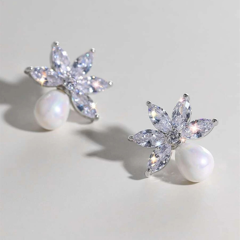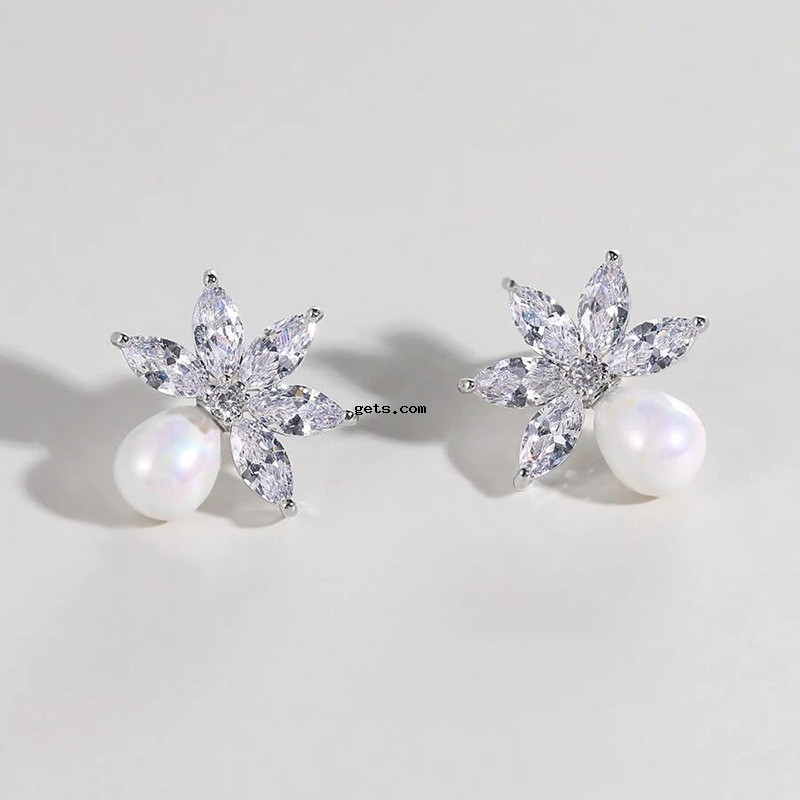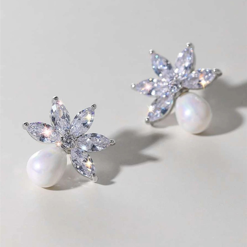 Befestiger Zirkonia Messing Ohrring, Blume, Platinfarbe platiniert
