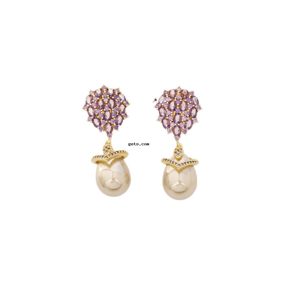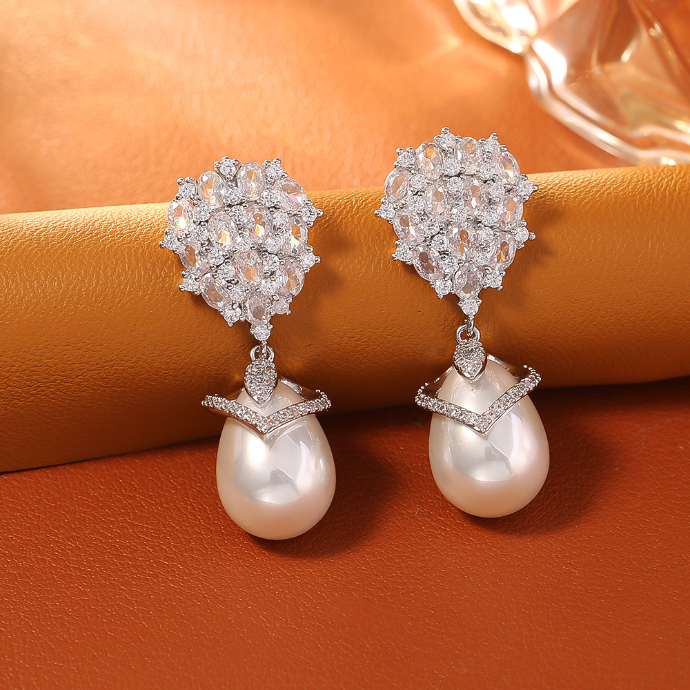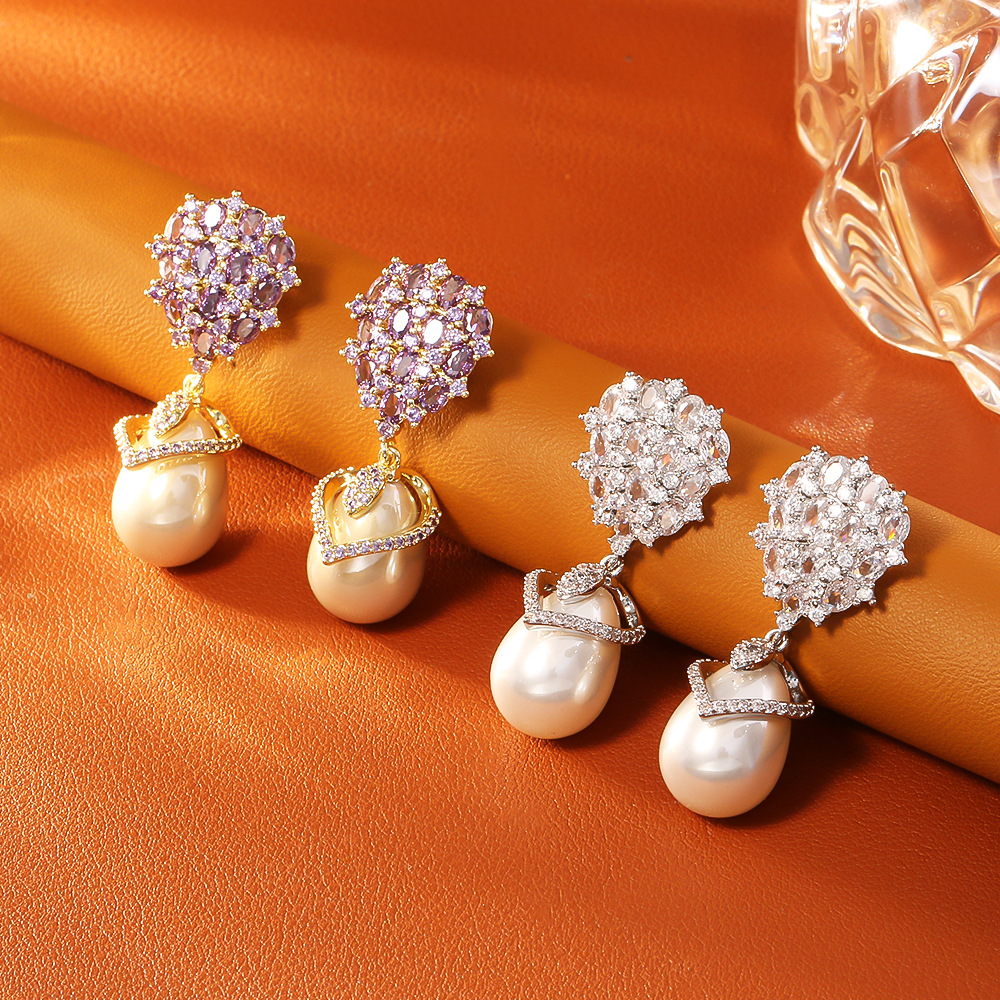 Befestiger Zirkonia Messing Ohrring, mit Kunststoff Perlen, plattiert, Modeschmuck & Micro pave Zirkonia & für Frau, keine, verkauft von Paar