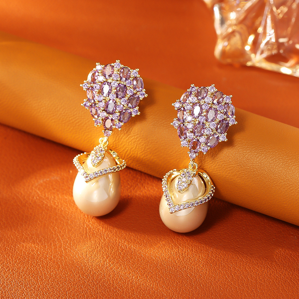 Befestiger Zirkonia Messing Ohrring, plattiert, Modeschmuck & Micro pave Zirkonia & für Frau