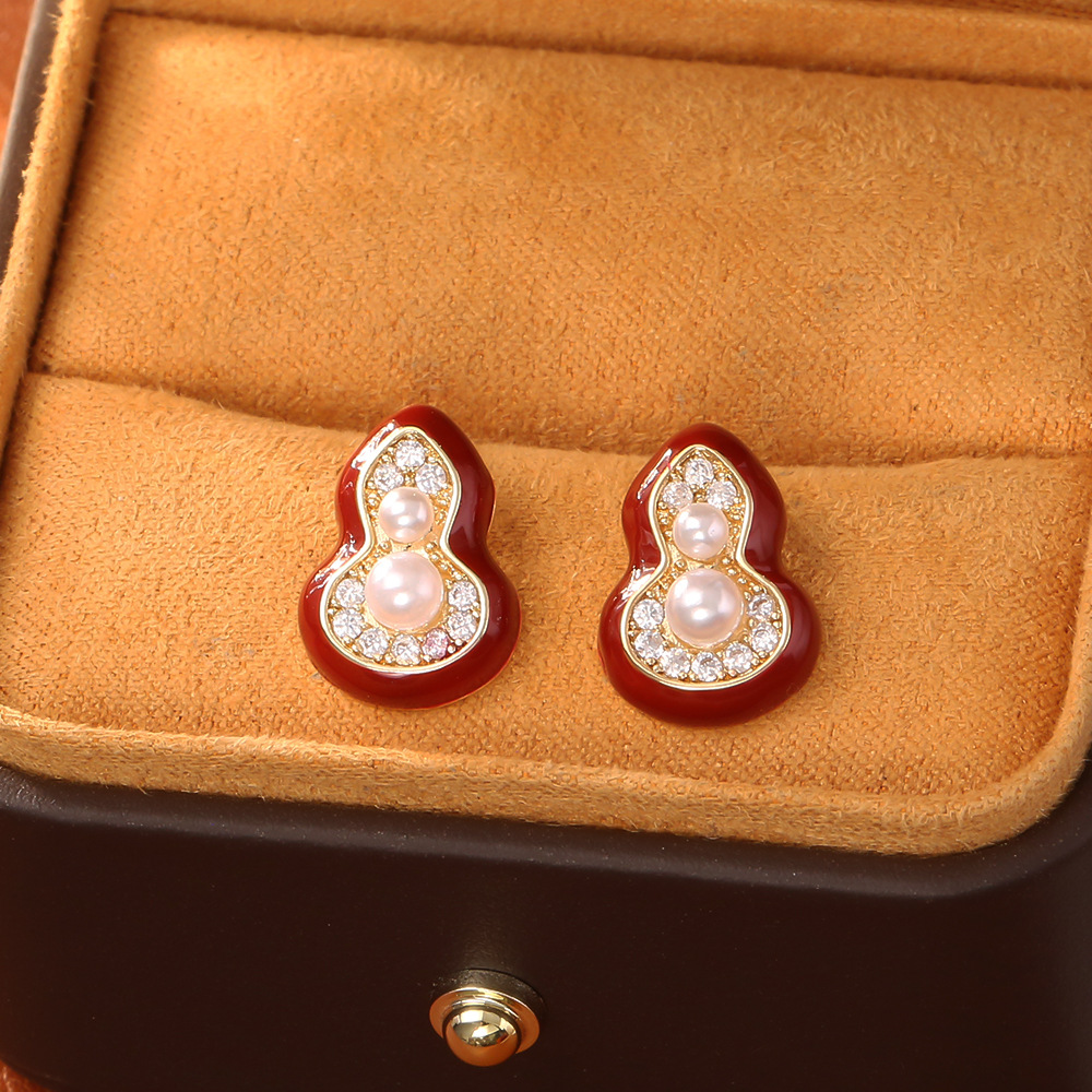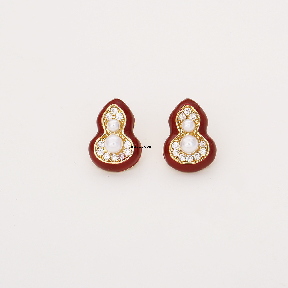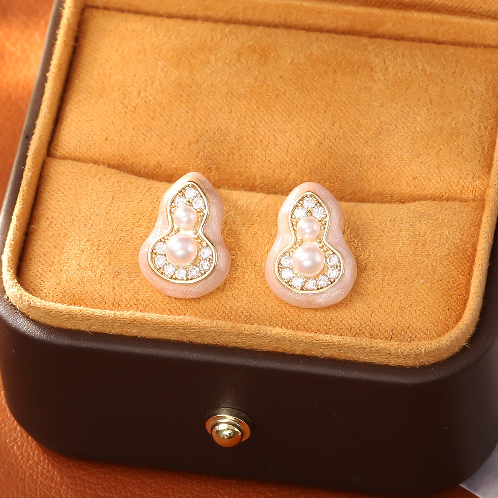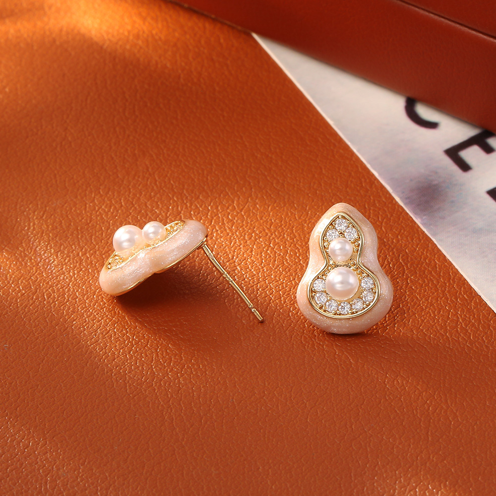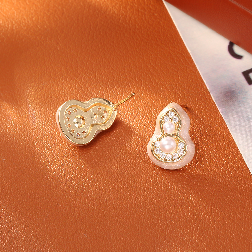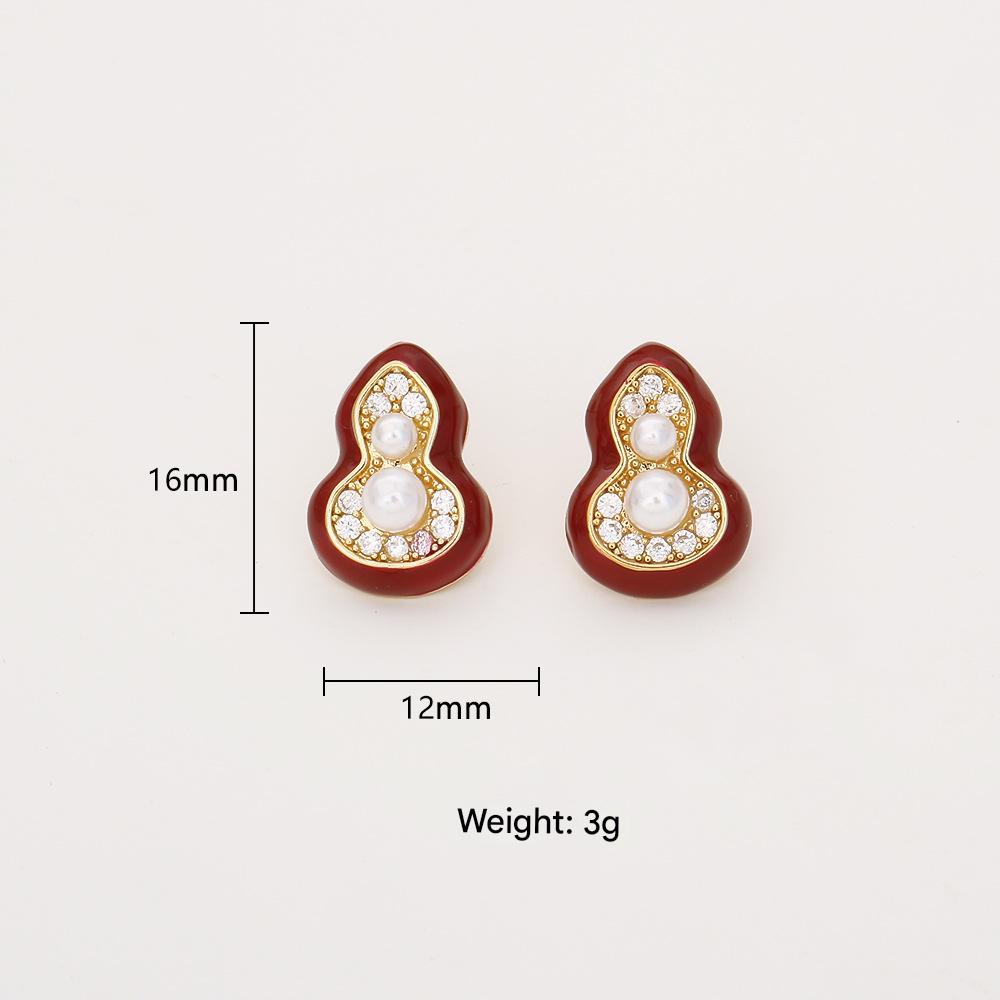 Befestiger Zirkonia Messing Ohrring, mit Kunststoff Perlen, Kalebasse, vergoldet, Micro pave Zirkonia & für Frau & Emaille, verkauft von Paar