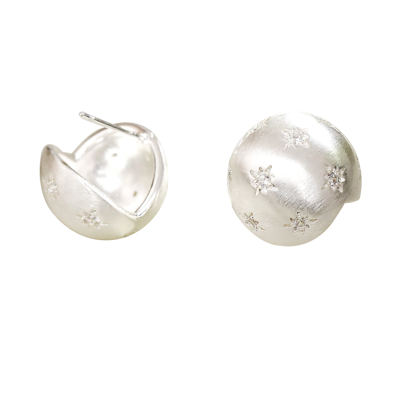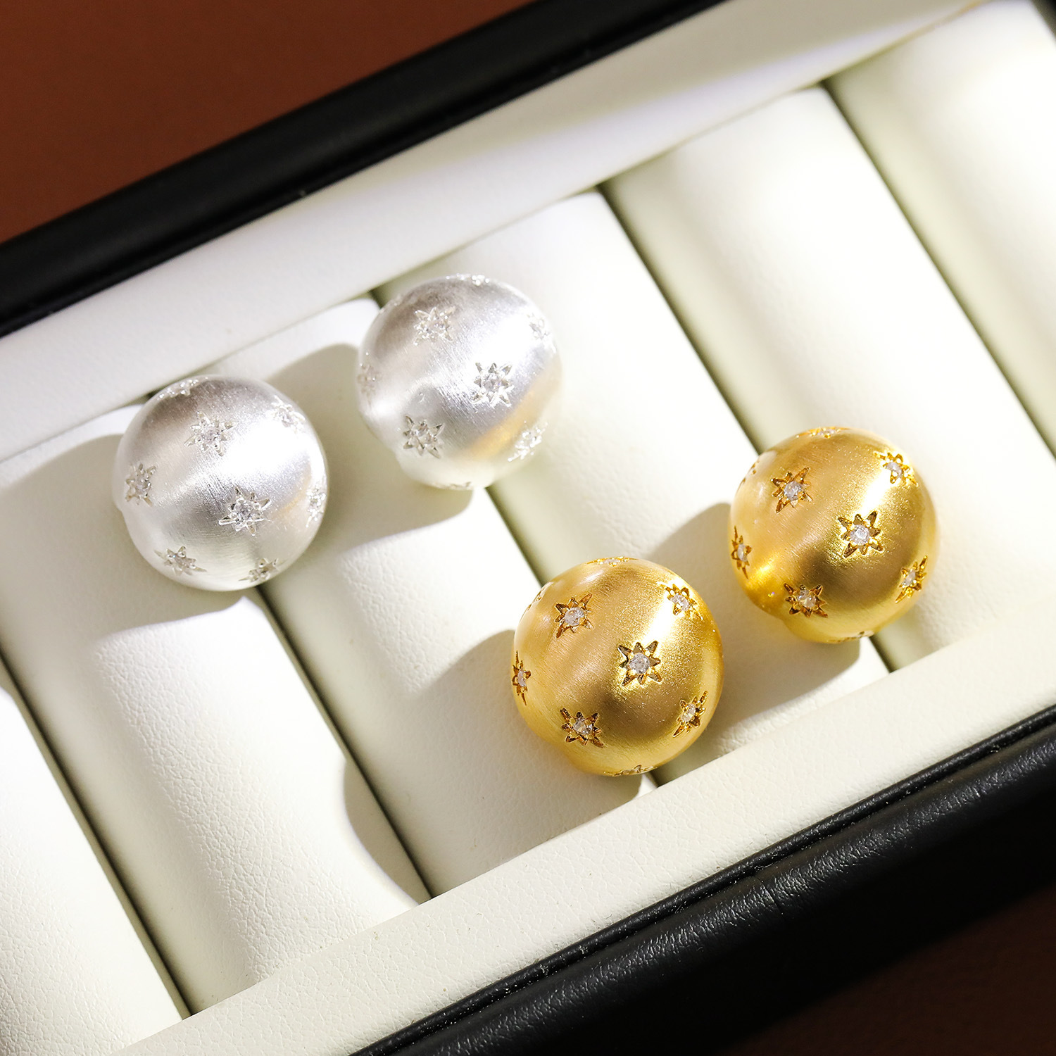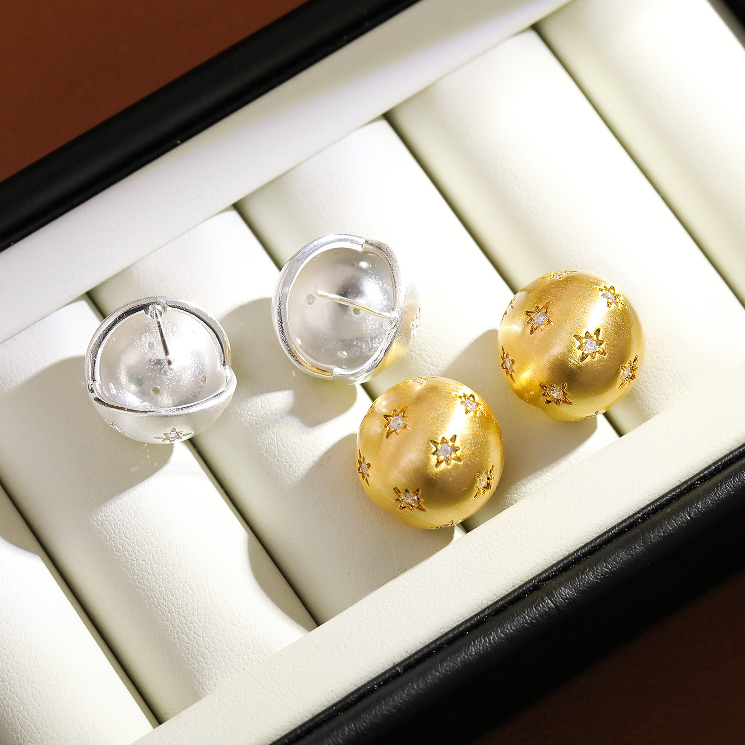 - Befestiger Zirkonia Messing Ohrring, flache Runde, vergoldet