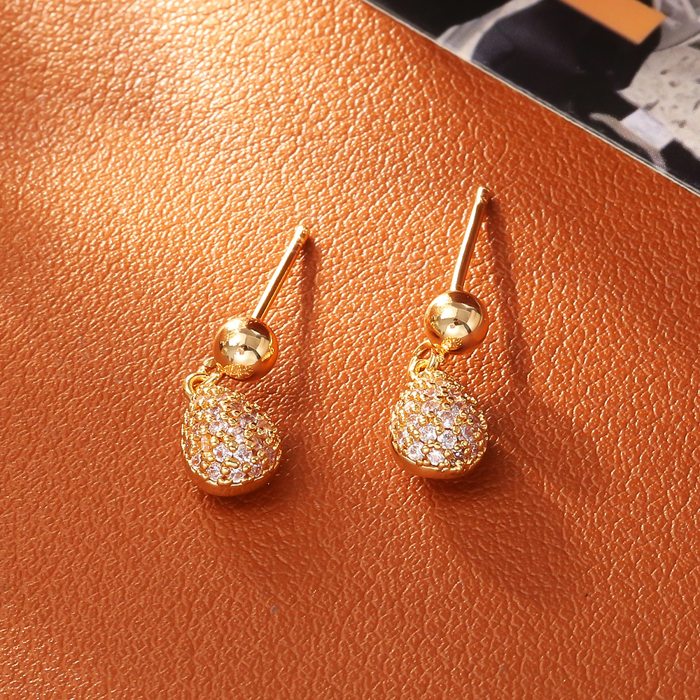 - Befestiger Zirkonia Messing Ohrring, rund, plattiert