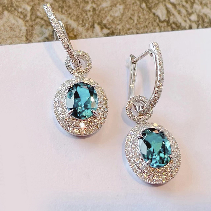 Befestiger Zirkonia Messing Ohrring, plattiert, Micro pave Zirkonia & für Frau, blau, 53mm, verkauft von Paar