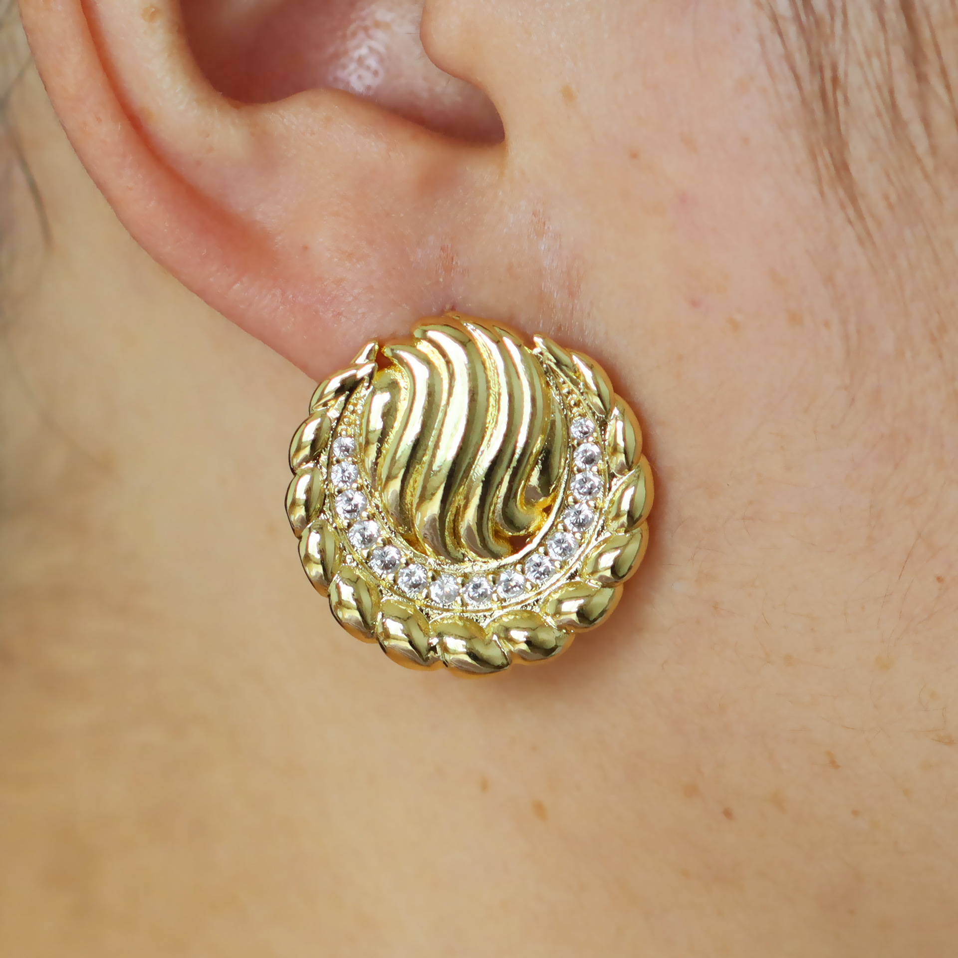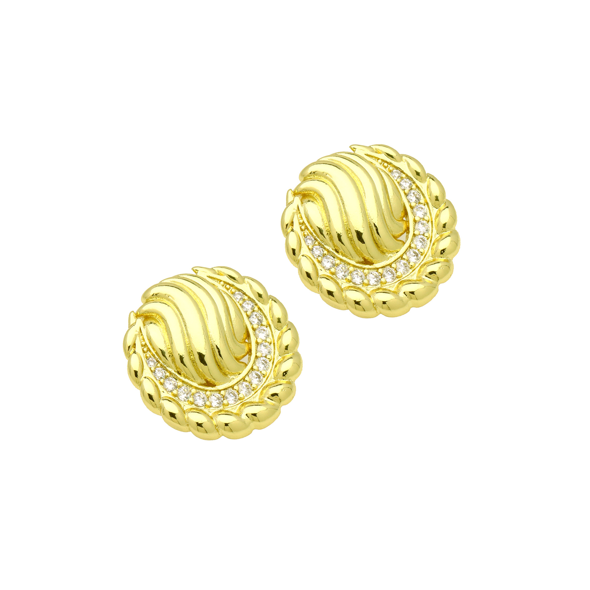 Befestiger Zirkonia Messing Ohrring, rund, 18K vergoldet