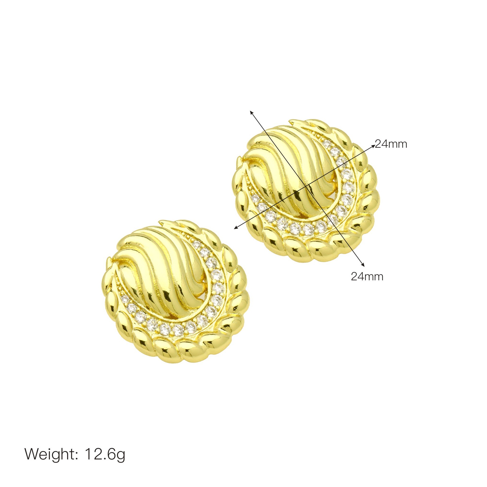 Befestiger Zirkonia Messing Ohrring, rund, 18K vergoldet, Modeschmuck & Micro pave Zirkonia & für Frau, Diameter: 1.3cm, verkauft von Paar