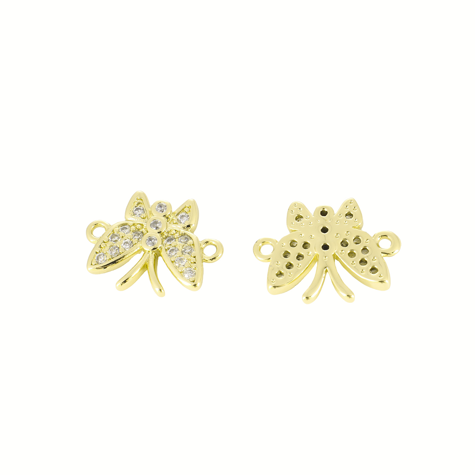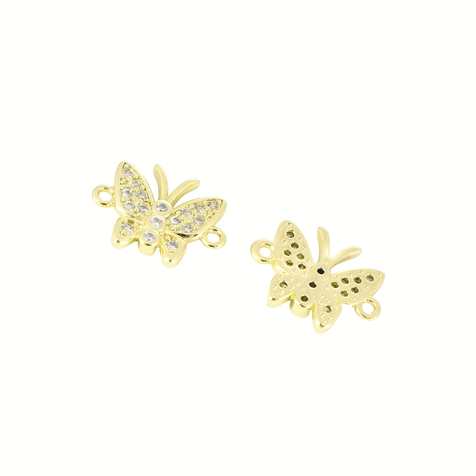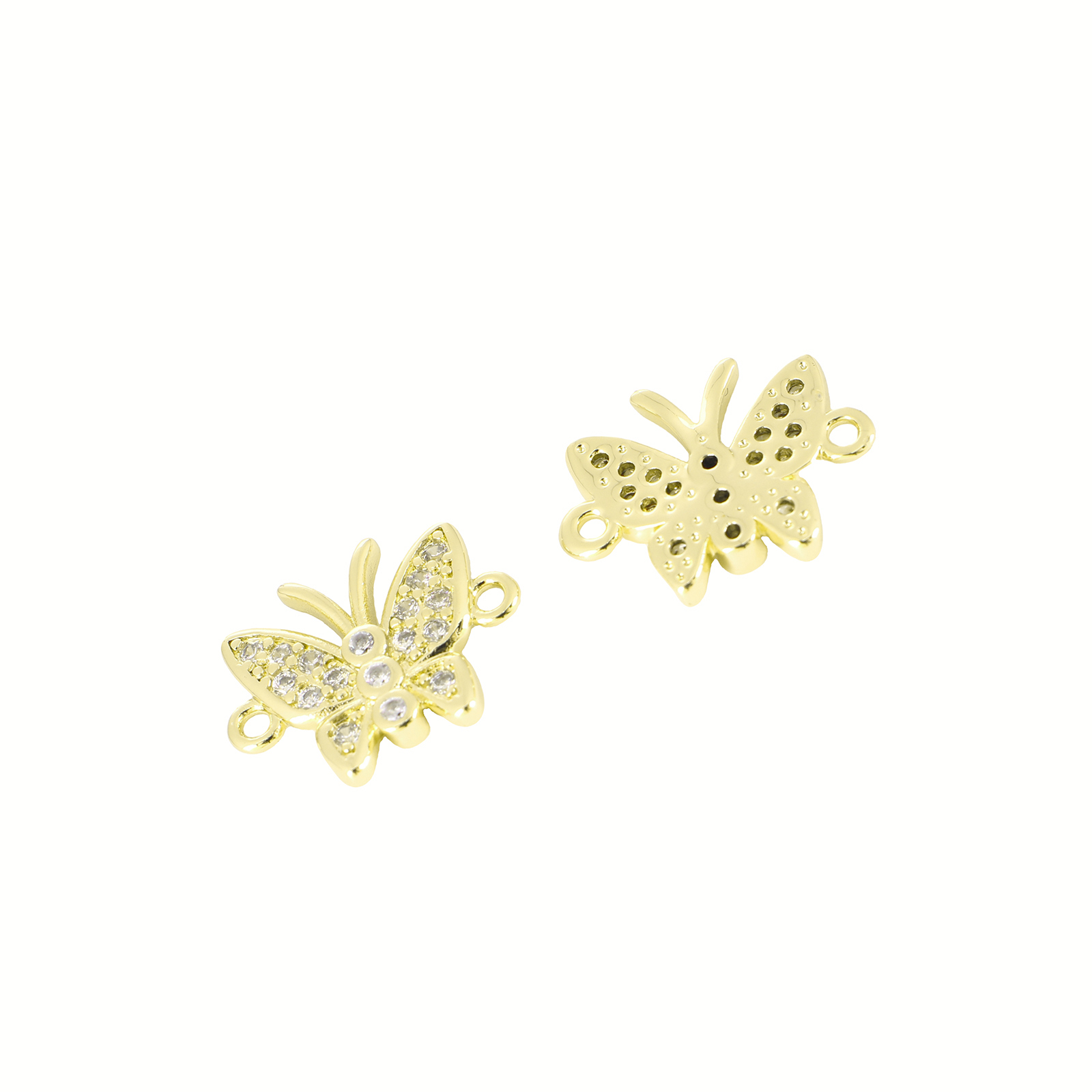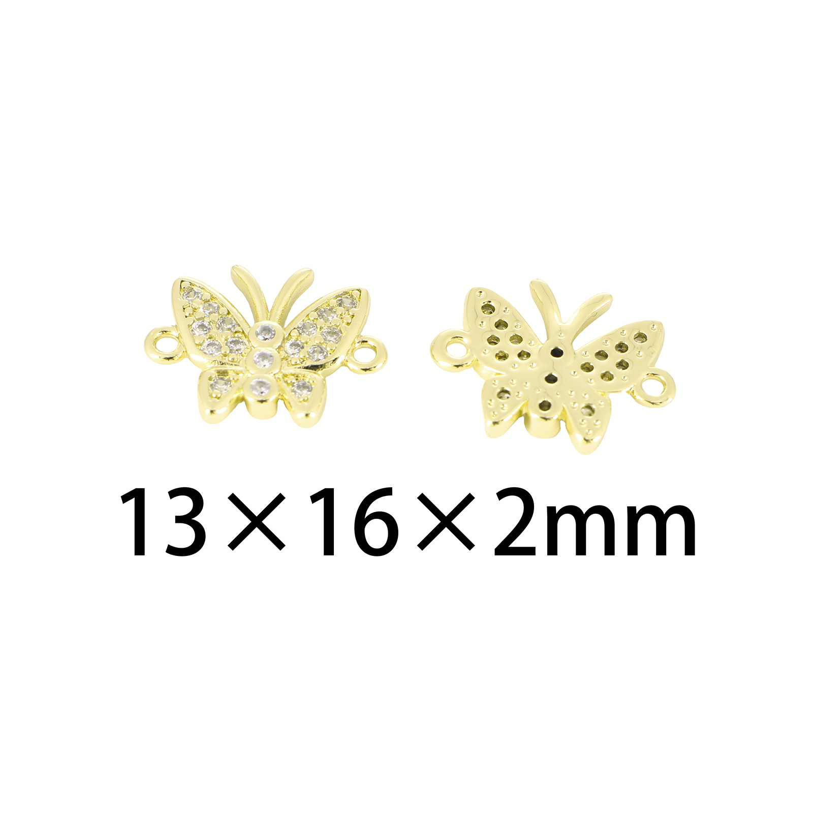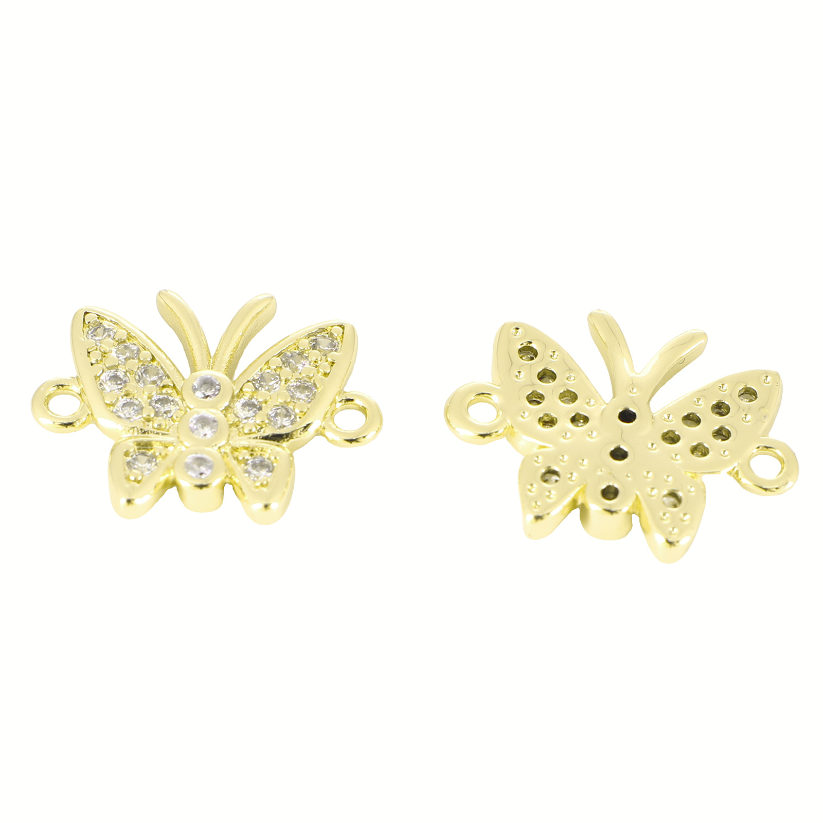 Befestiger Zirkonia Messing Schmuckverbinder, Schmetterling, goldfarben plattiert, DIY & Micro pave Zirkonia, 13x16x2mm, verkauft von PC