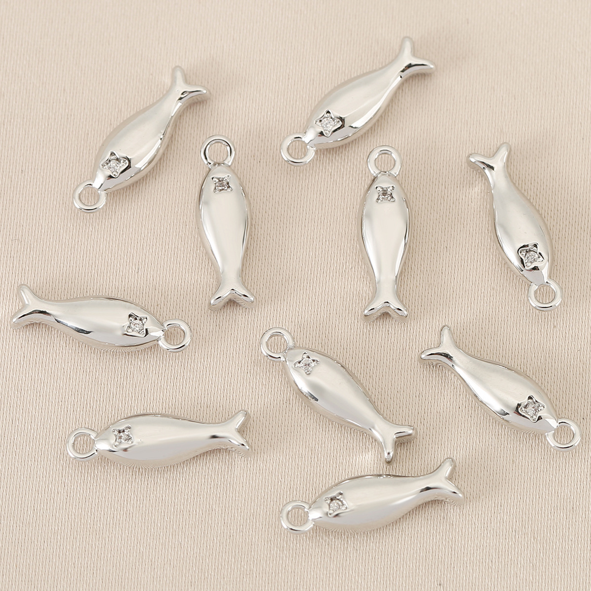 Befestigter Zirkonia Messing Anhänger, Fisch, plattiert, DIY & Micro pave Zirkonia, keine, frei von Nickel, Blei & Kadmium, 10PCs/Tasche, verkauft von Tasche