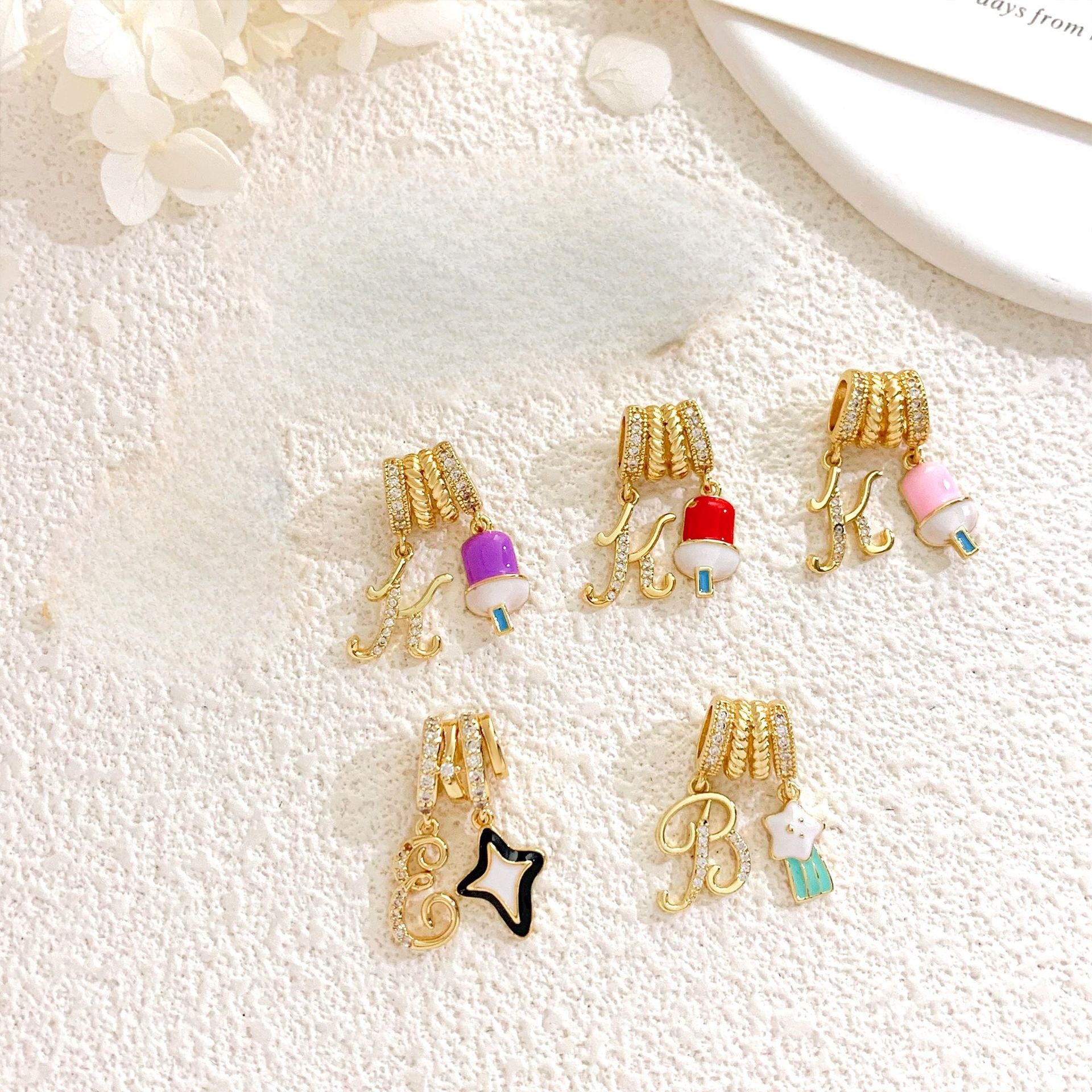 Befestigter Zirkonia Messing Anhänger, Reis, plattiert, DIY & Micro pave Zirkonia & Emaille, keine, frei von Nickel, Blei & Kadmium, verkauft von PC