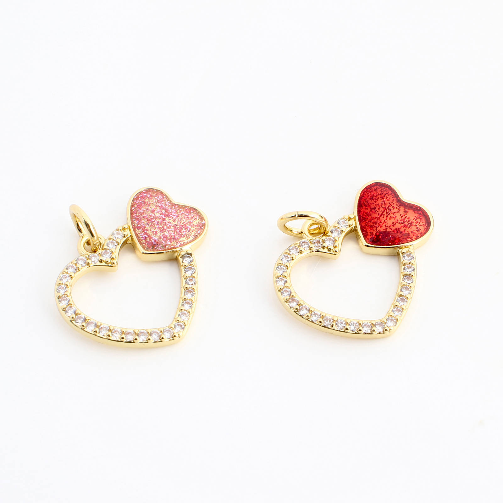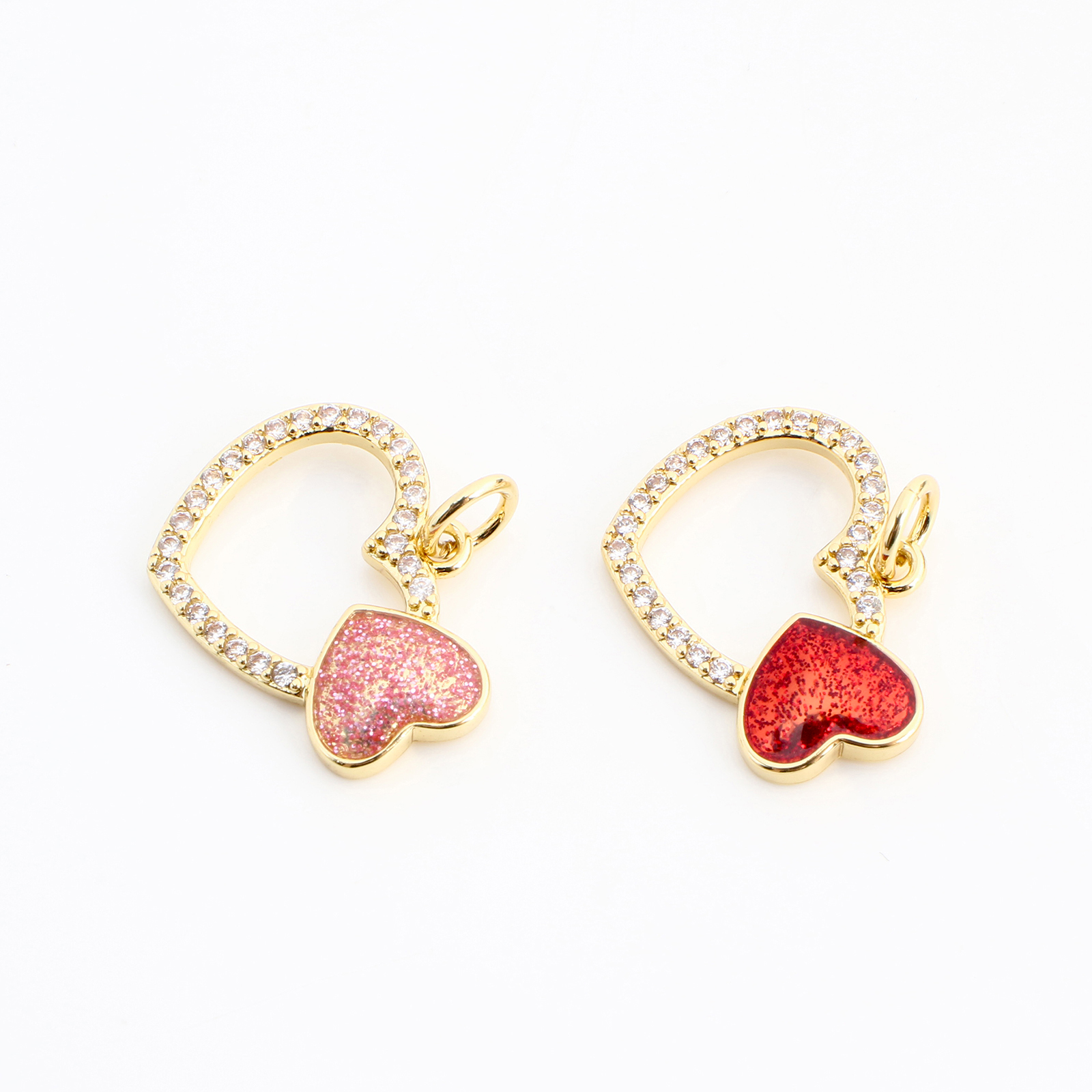 Befestigter Zirkonia Messing Anhänger, mit Kunststoff Perlen, Herz