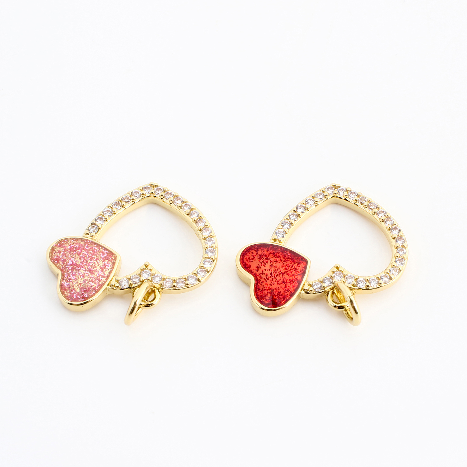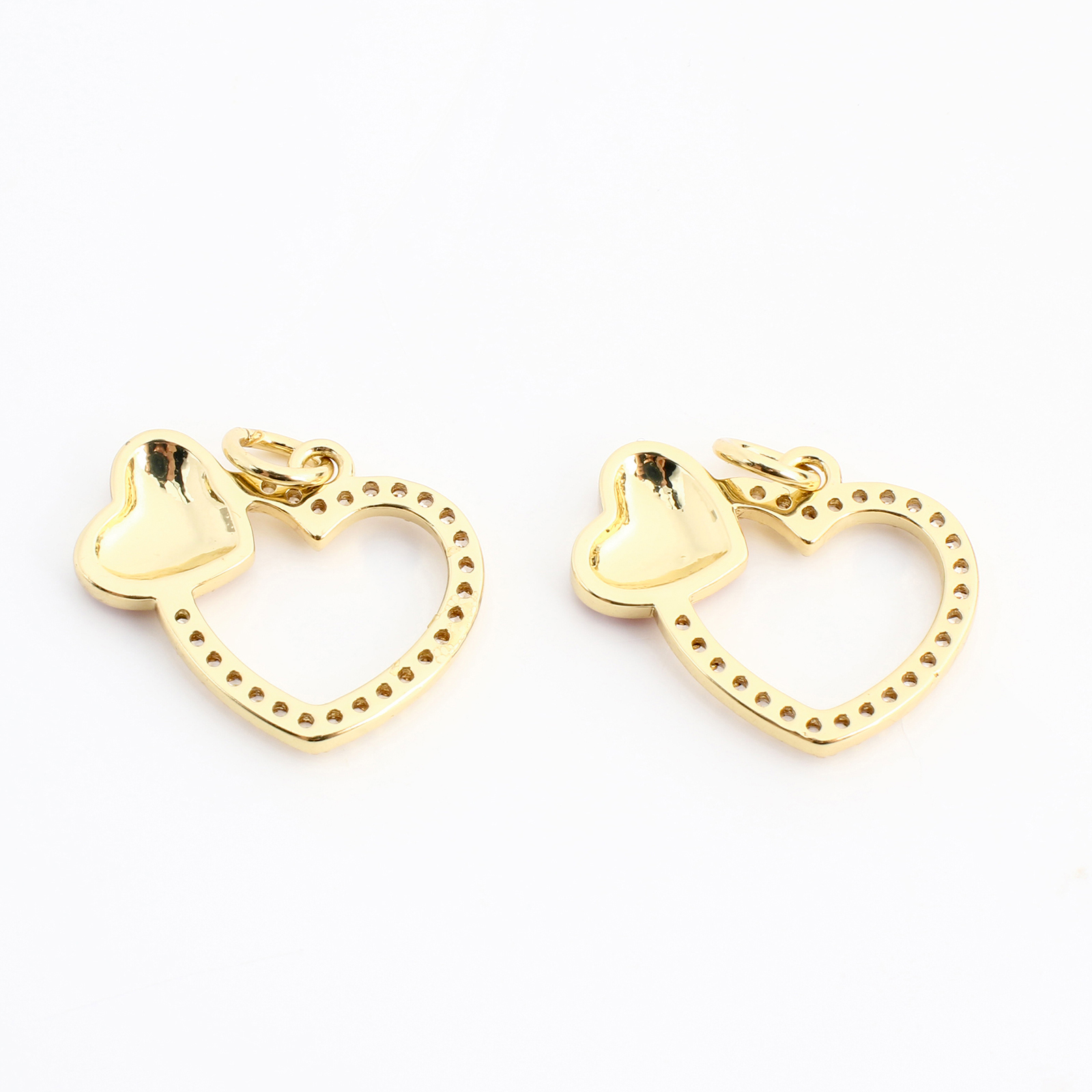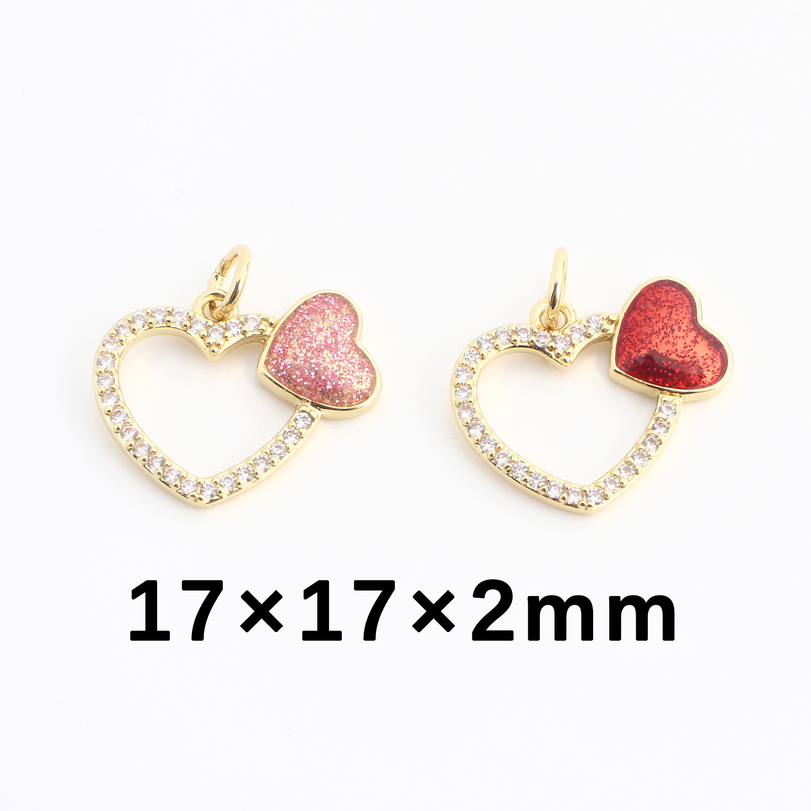 Befestigter Zirkonia Messing Anhänger, Herz, goldfarben plattiert, DIY & Micro pave Zirkonia & Emaille & hohl, keine, 17x17x2mm, verkauft von PC