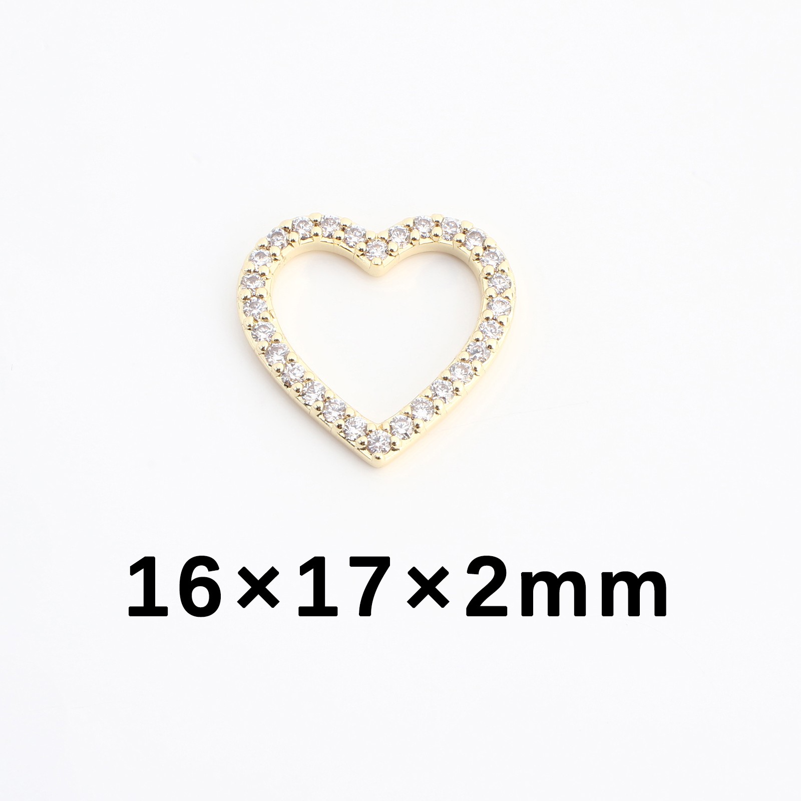 Befestigter Zirkonia Messing Anhänger, Herz, DIY & Micro pave Zirkonia, goldfarben, 16x17x2mm, verkauft von PC