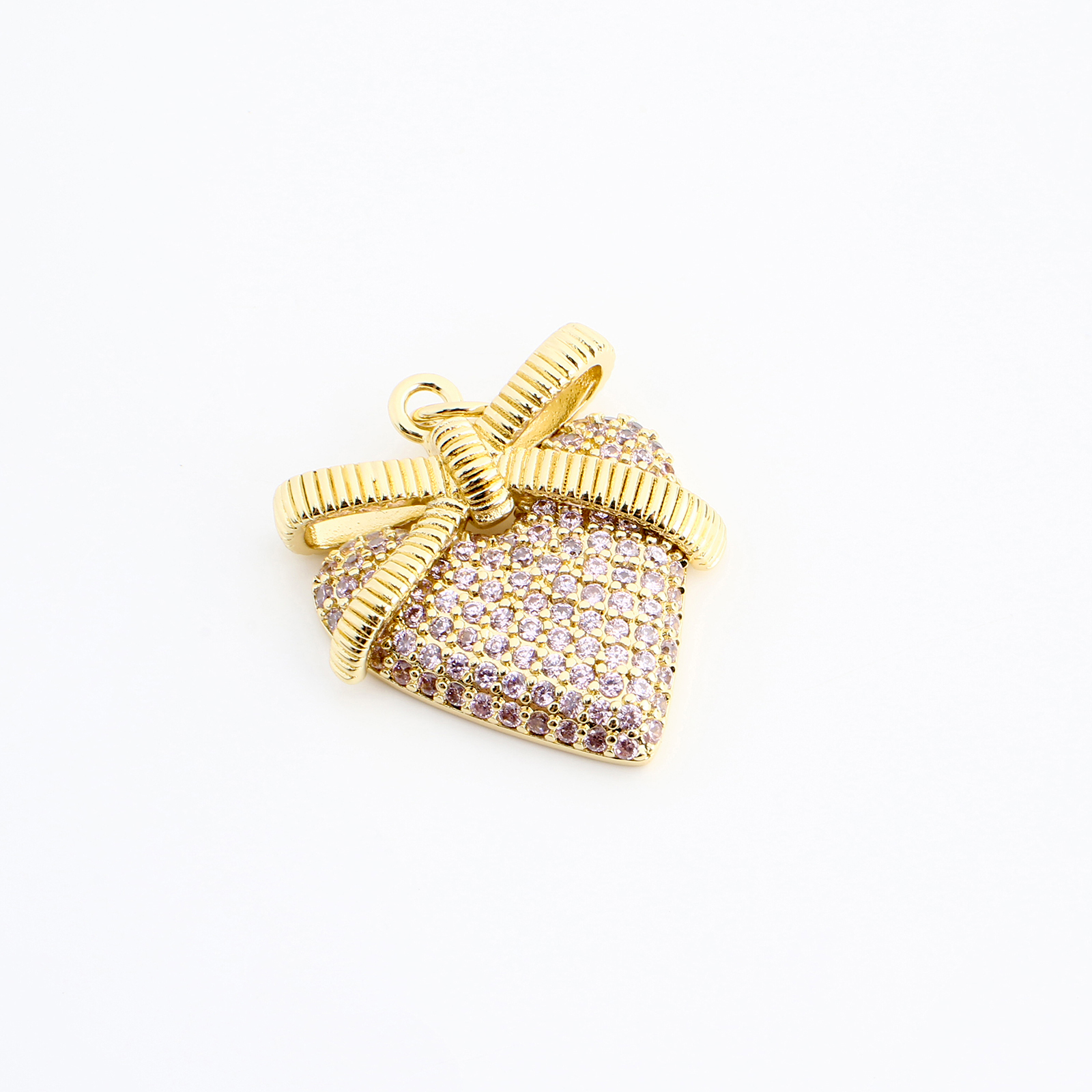 Befestigter Zirkonia Messing Anhänger, Herz, DIY & Micro pave Zirkonia, goldfarben, 24x22x5mm, verkauft von PC