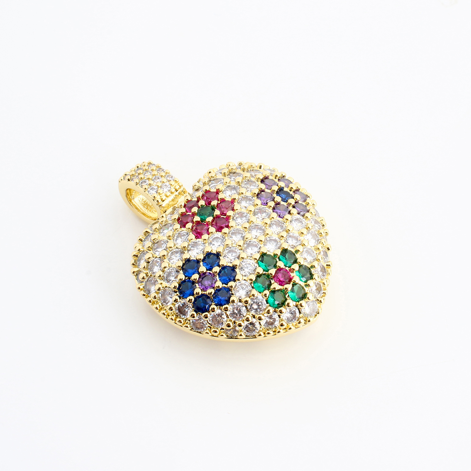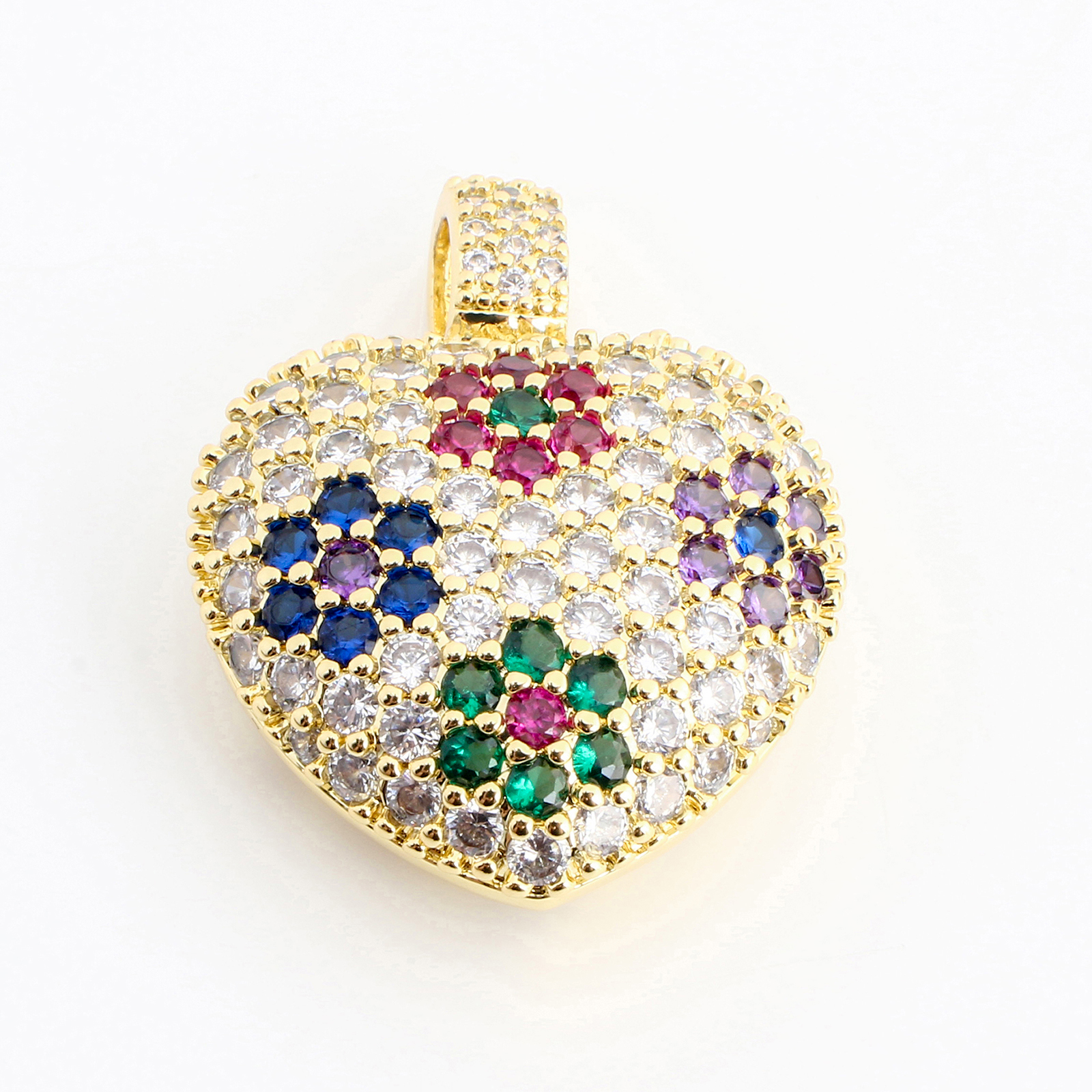 Befestigter Zirkonia Messing Anhänger, Herz, goldfarben plattiert, DIY & Micro pave Zirkonia & Emaille, keine, frei von Nickel, Blei & Kadmium, 17x13x2mm, verkauft von PC