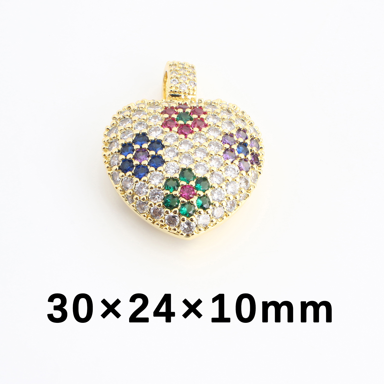 Befestigter Zirkonia Messing Anhänger, Herz, DIY & Micro pave Zirkonia, goldfarben, 30x24x10mm, verkauft von PC