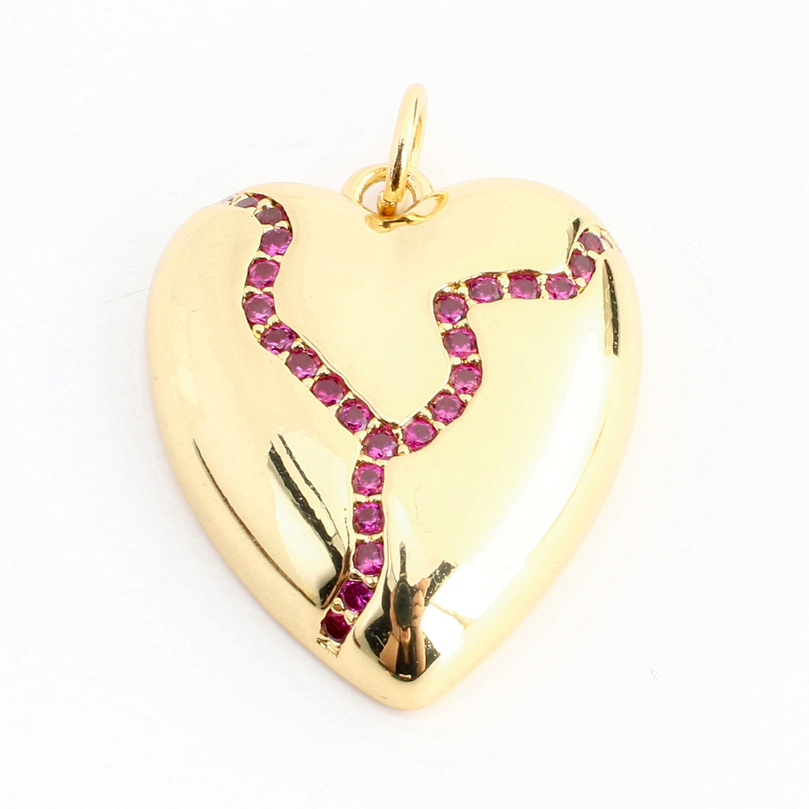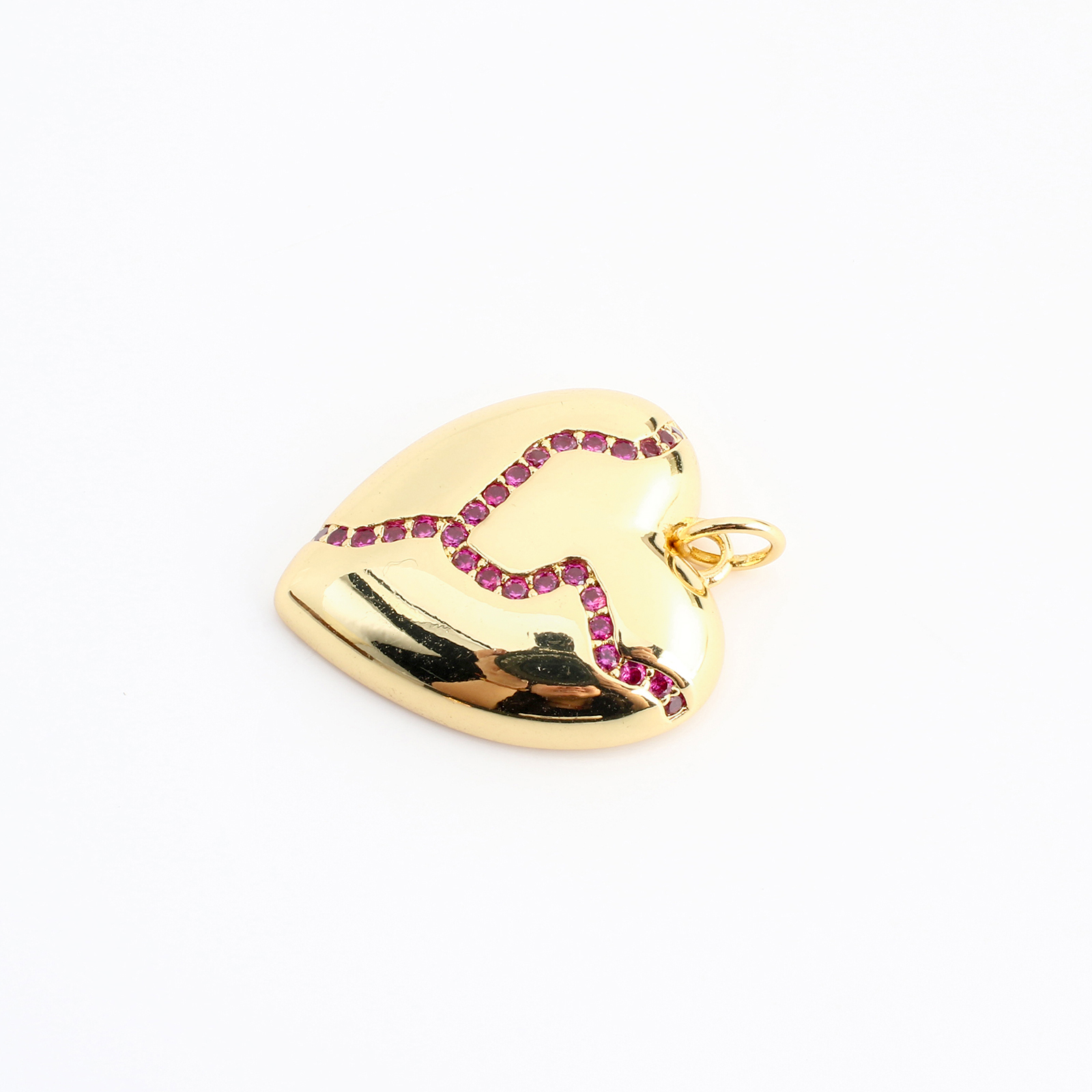 Befestigter Zirkonia Messing Anhänger, Herz, DIY & Micro pave Zirkonia, goldfarben, 20x17x4mm, verkauft von PC