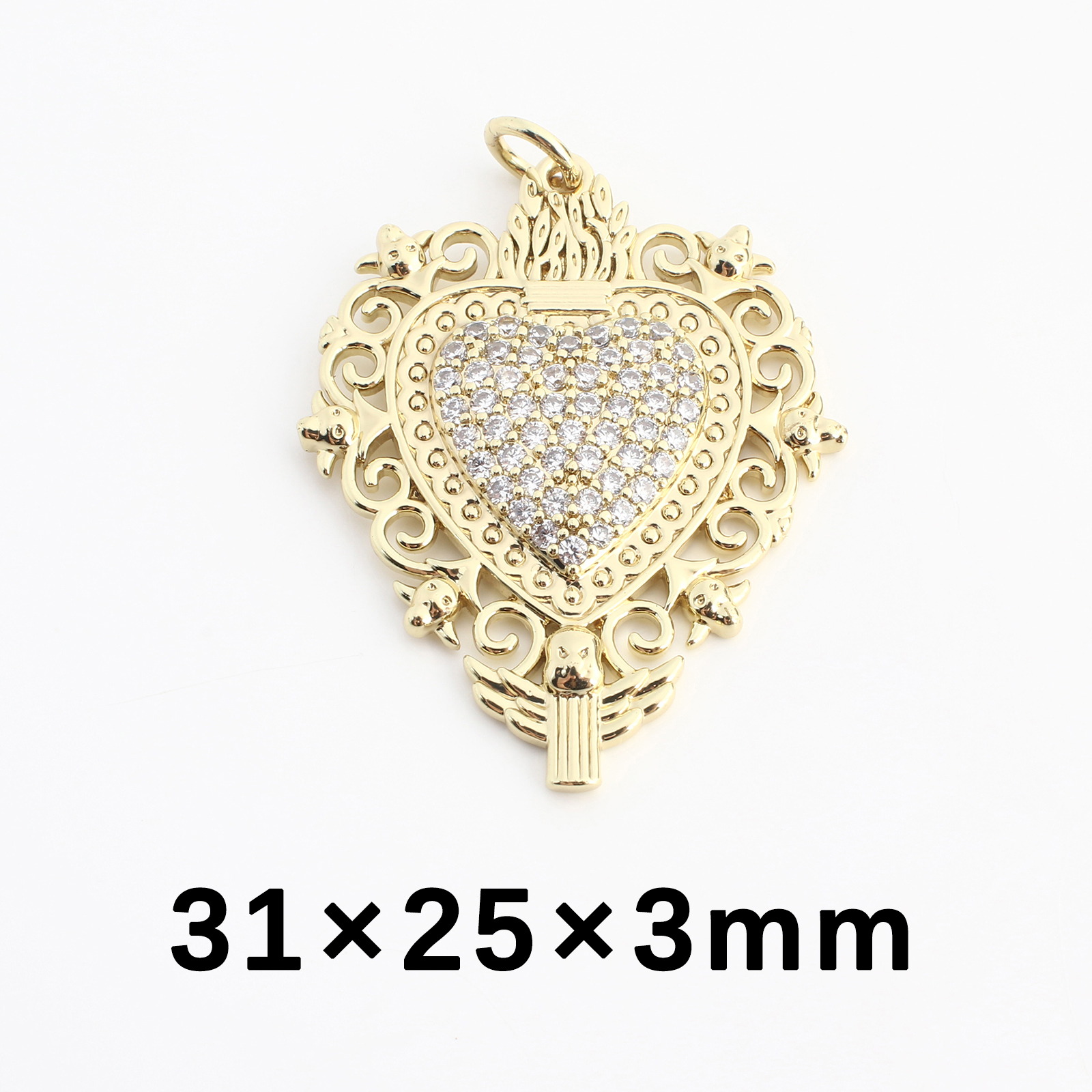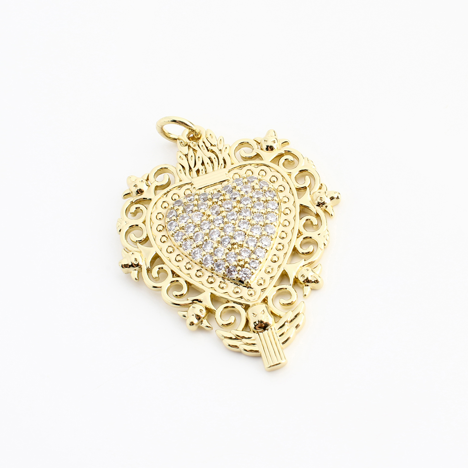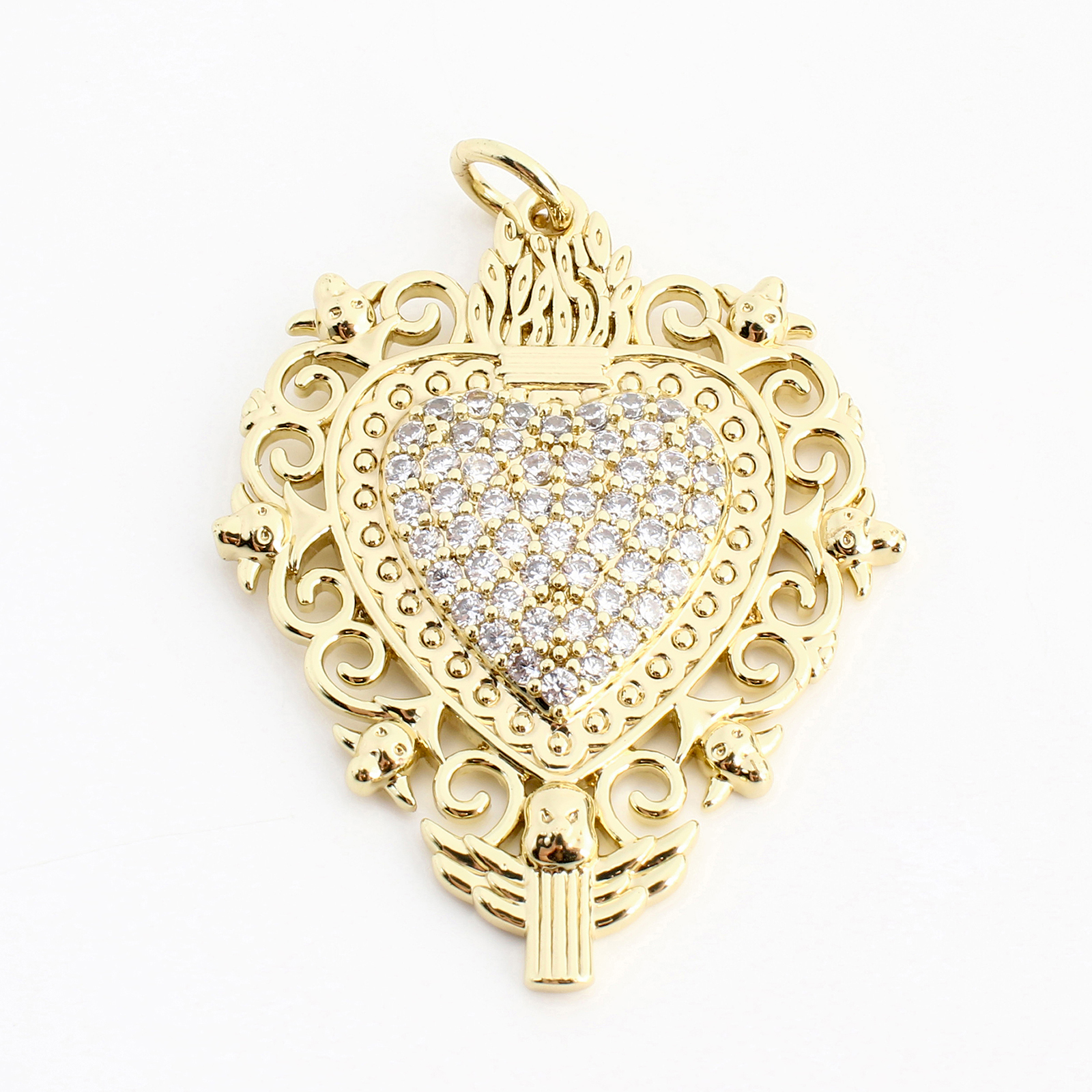 Befestigter Zirkonia Messing Anhänger, Herz, DIY & Micro pave Zirkonia & hohl, goldfarben, 31x25x3mm, verkauft von PC