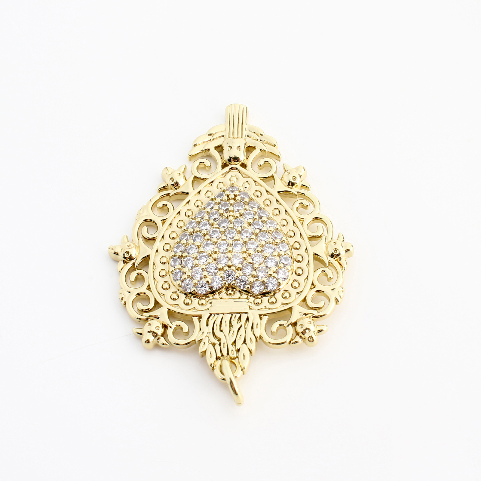 Befestigter Zirkonia Messing Anhänger, goldfarben plattiert, DIY & Micro pave Zirkonia, frei von Nickel, Blei & Kadmium, 23.50x22x5mm, verkauft von PC