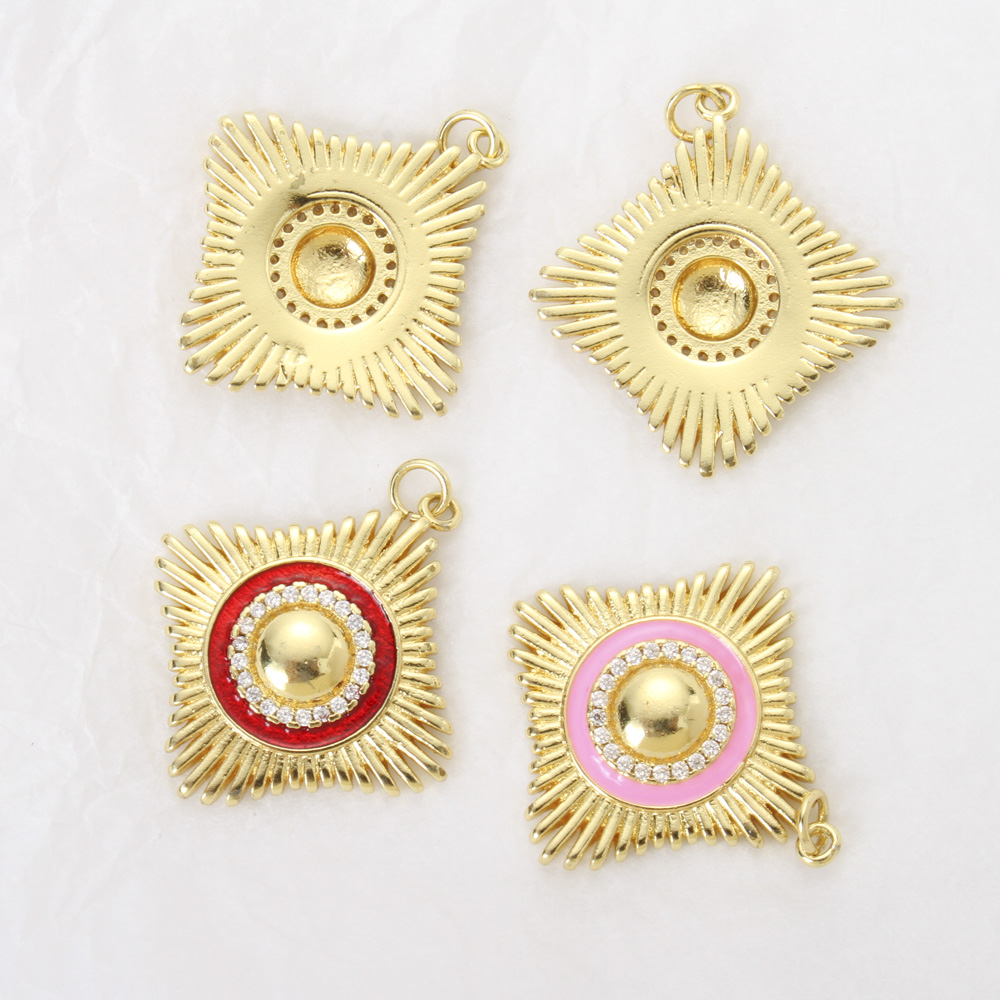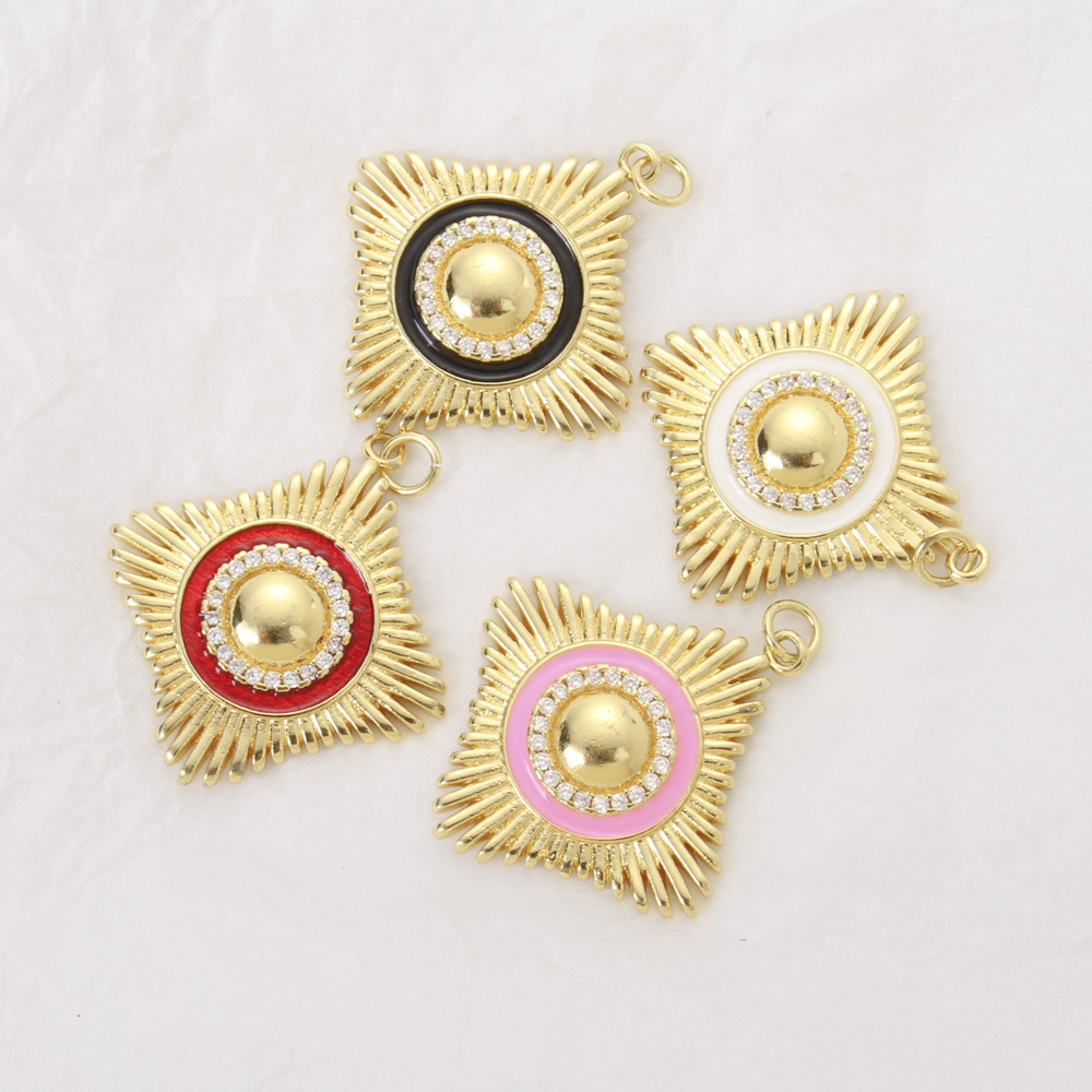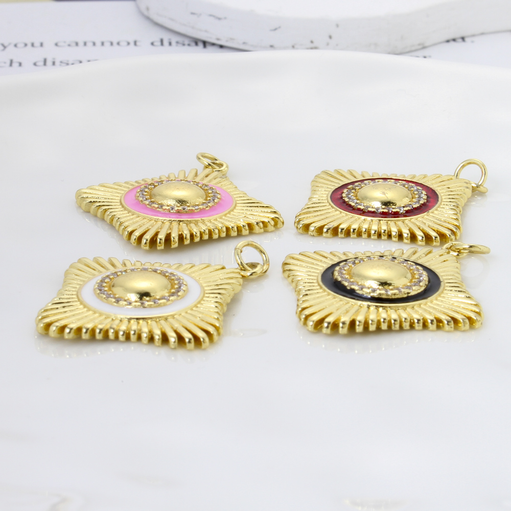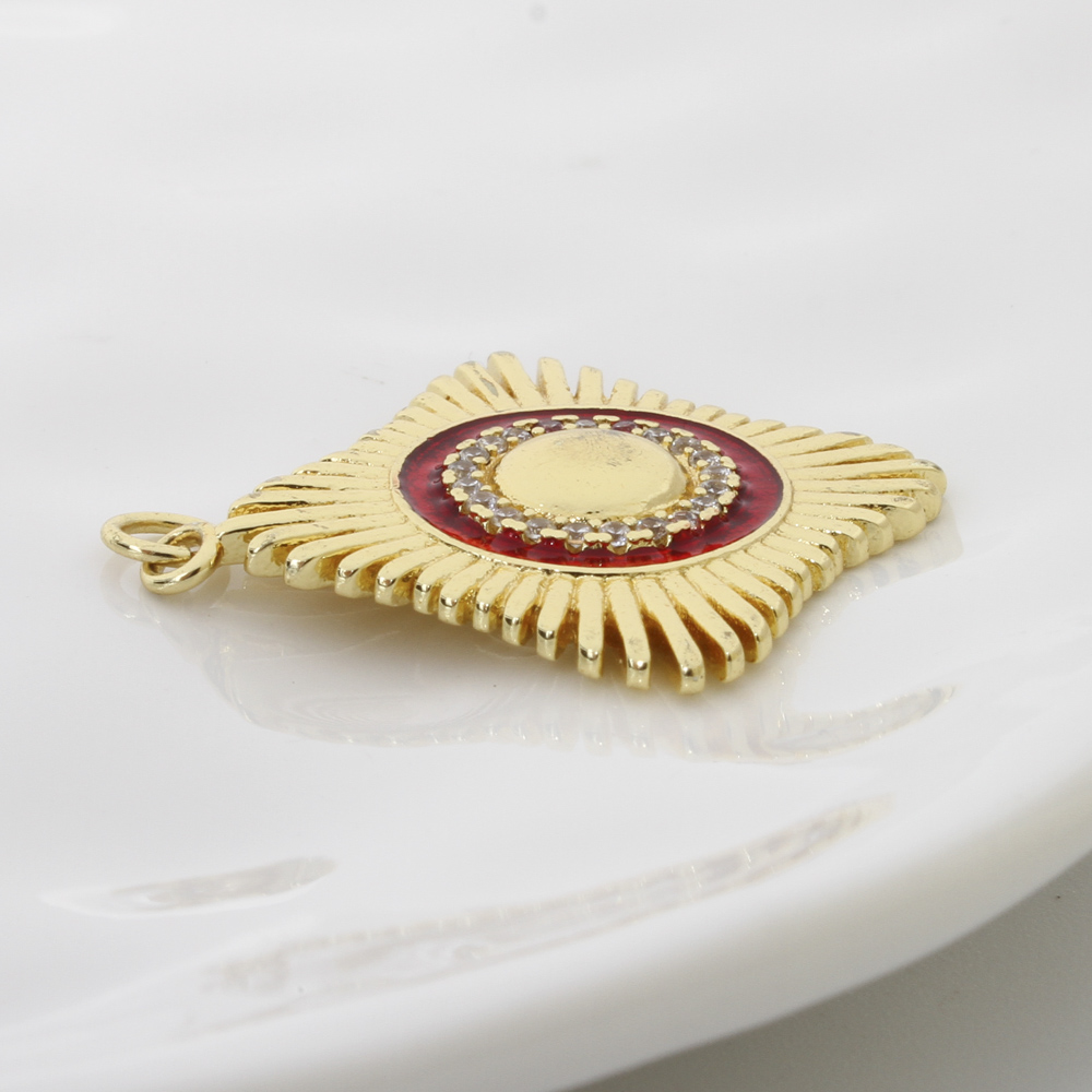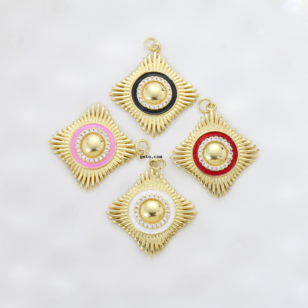 Befestigter Zirkonia Messing Anhänger, Rhombus, plattiert, DIY & Micro pave Zirkonia & Emaille, keine, frei von Nickel, Blei & Kadmium, 31.40x29x3.70mm, verkauft von PC