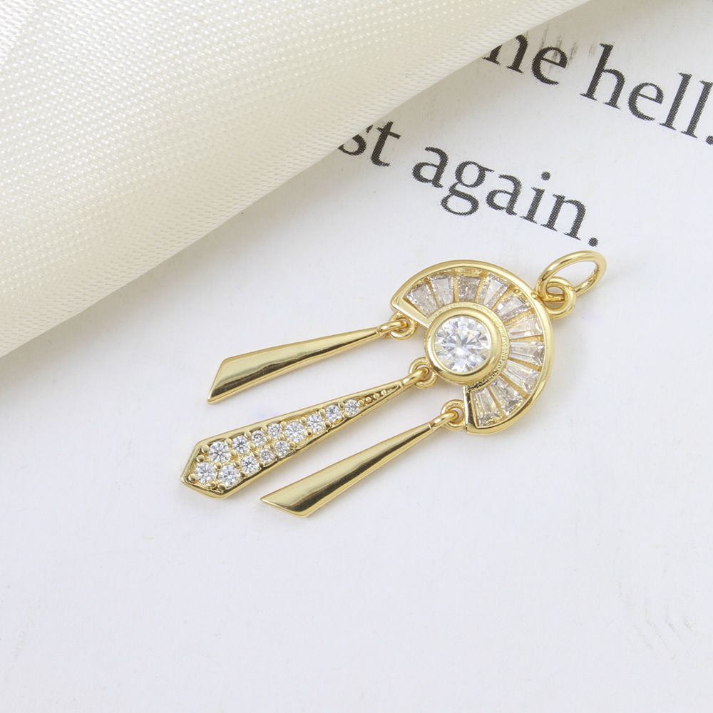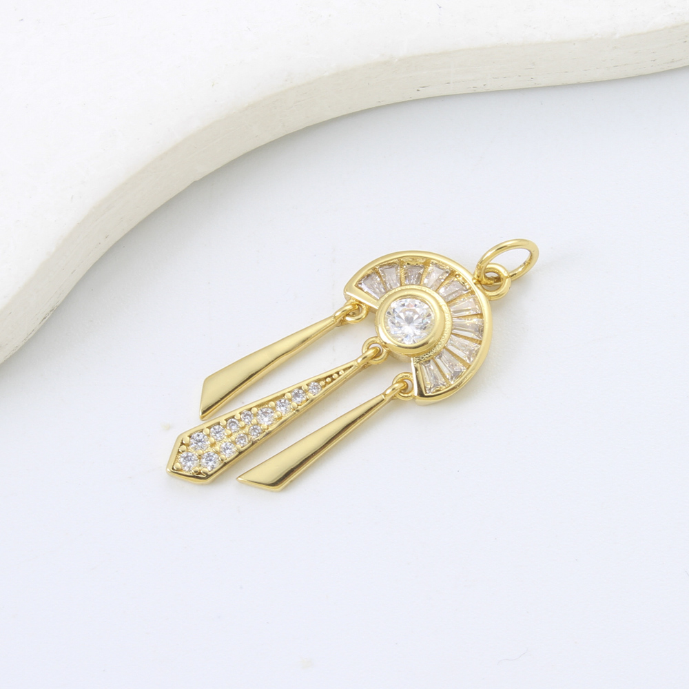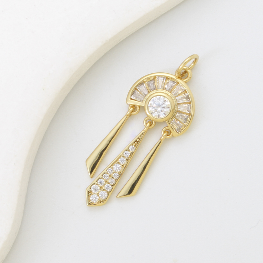Befestigter Zirkonia Messing Anhänger, Traumfänger, plattiert, DIY & Micro pave Zirkonia, goldfarben, 28x11.80x3.40mm, verkauft von PC