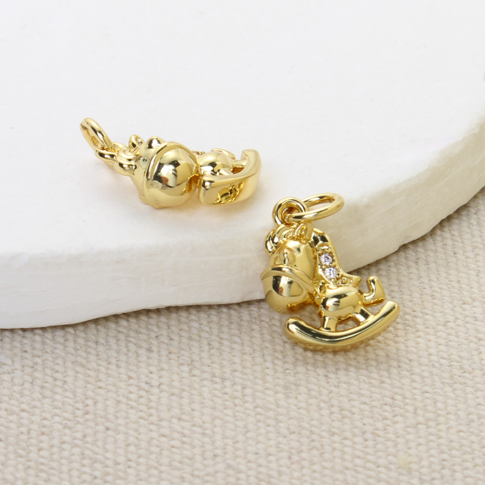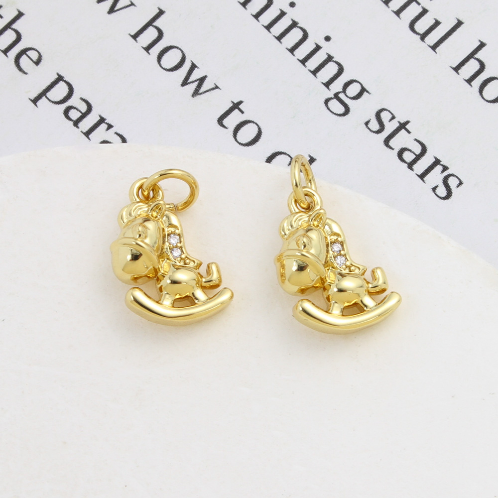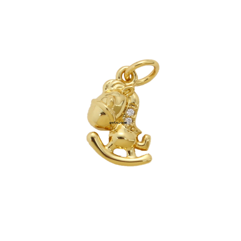 Befestigter Zirkonia Messing Anhänger, Pferd, plattiert, DIY & Micro pave Zirkonia, Goldfarbe, frei von Nickel, Blei & Kadmium, 13.30x8.60x5.80mm, verkauft von PC