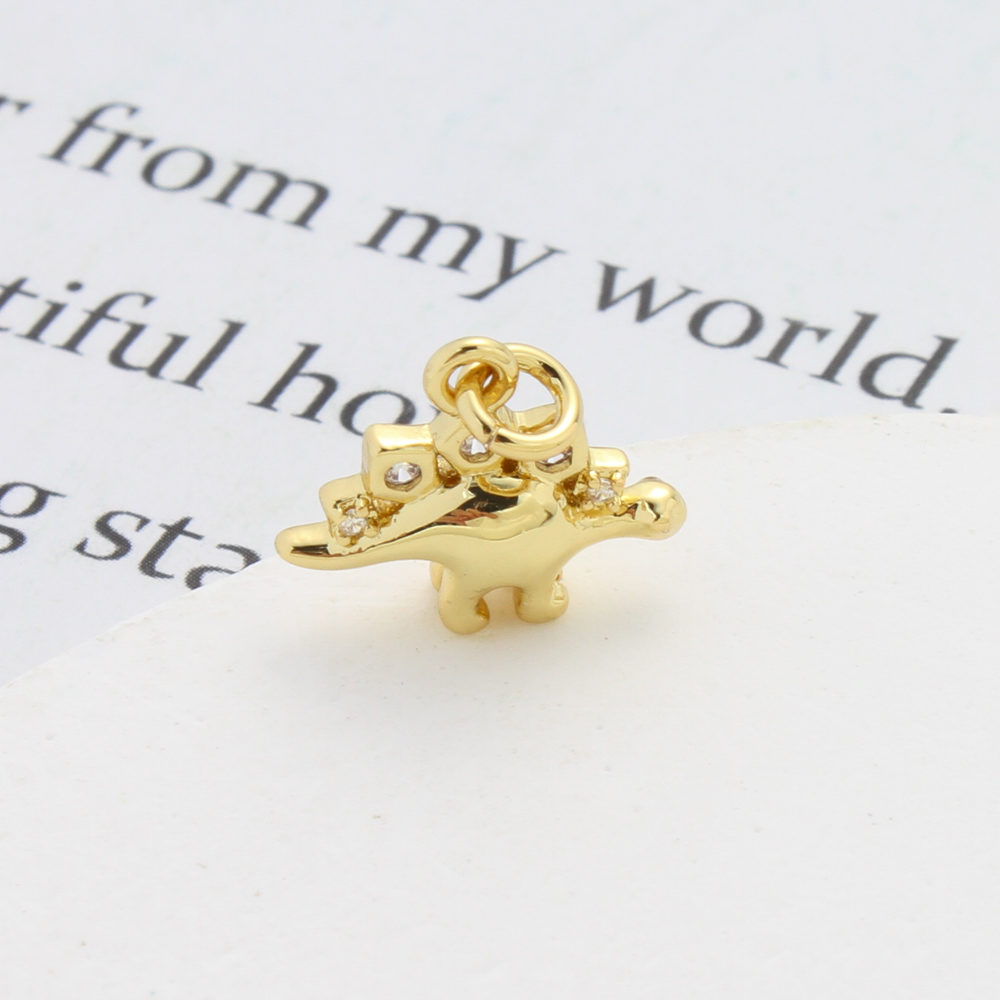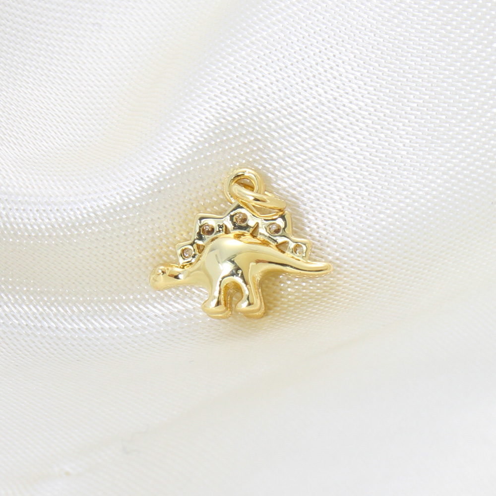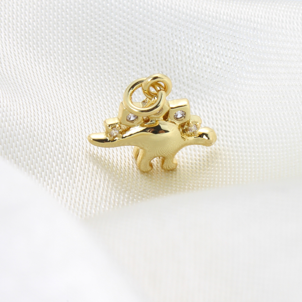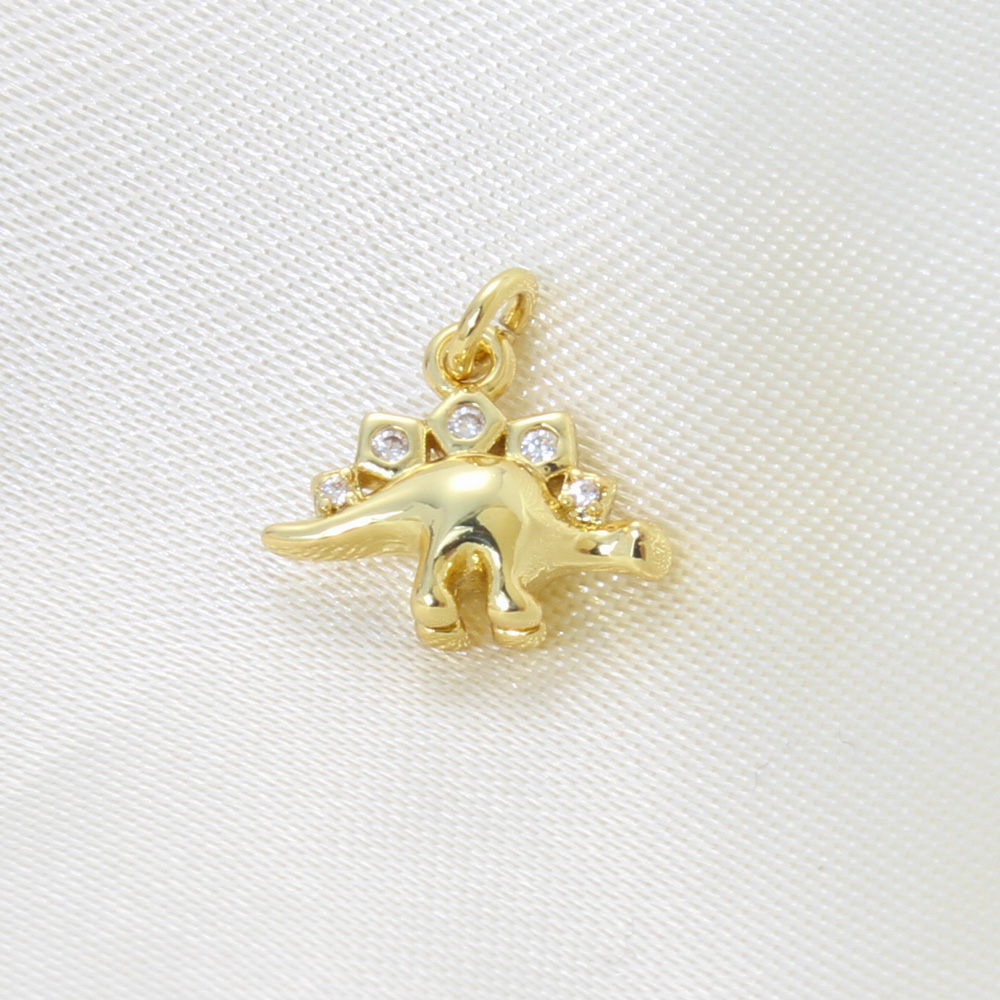 Befestigter Zirkonia Messing Anhänger, Dinosaurier, plattiert, DIY & Micro pave Zirkonia, Goldfarbe, frei von Nickel, Blei & Kadmium, 10.30x12.60x4.40mm, verkauft von PC