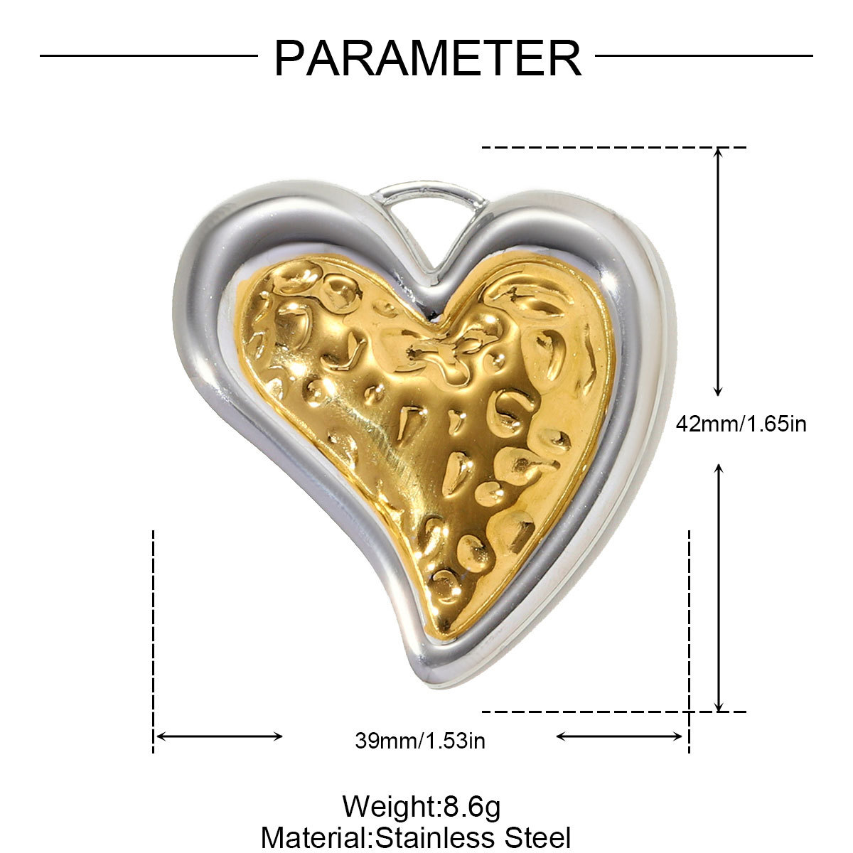 - Edelstahl -Herz-Anhänger, 304 Edelstahl, plattiert
