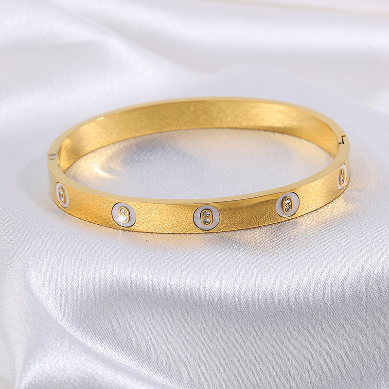 - Edelstahl Armreif, mit Harz, Micro pave Zirkonia