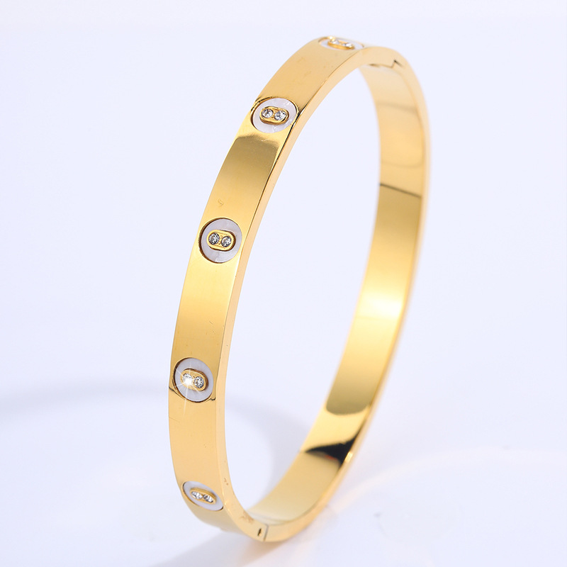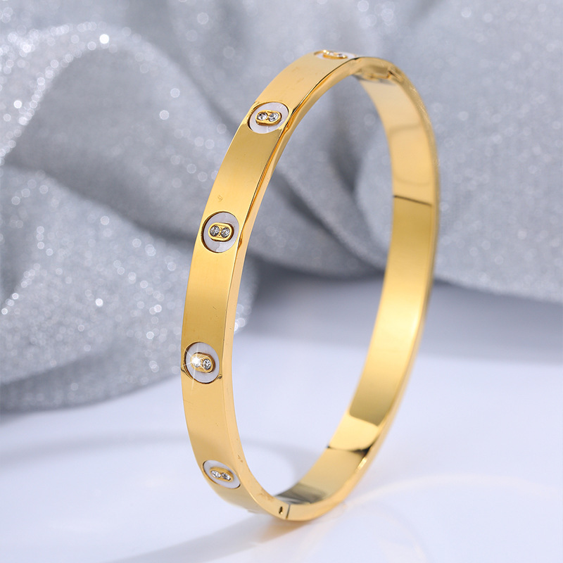 - Edelstahl Armreif, mit Weiße Muschel & Harz, plattiert