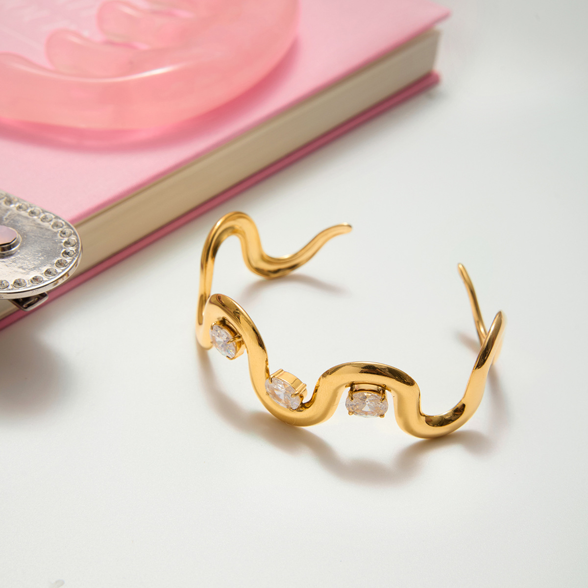 - Edelstahl Armreif, 304 Edelstahl, mit Strass
