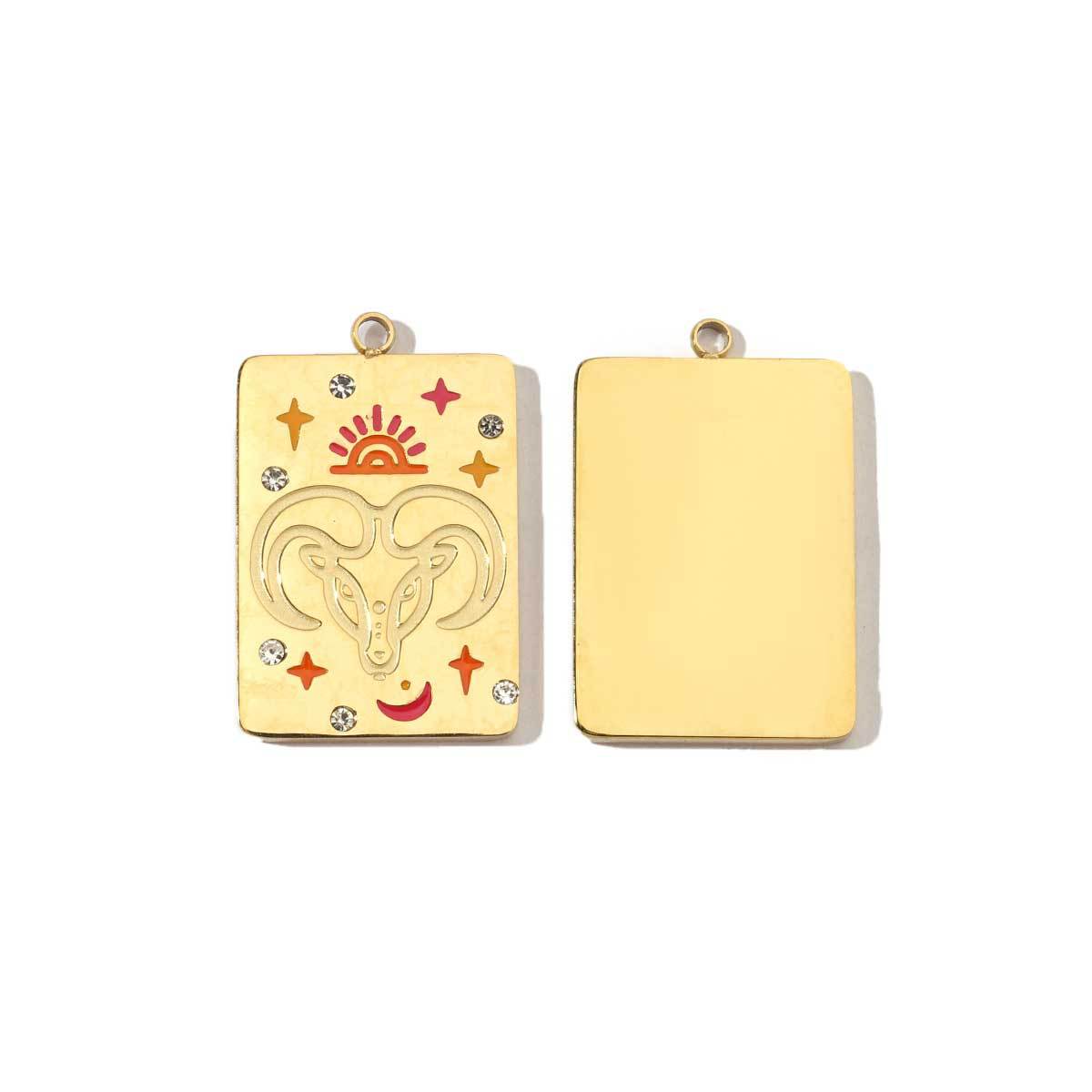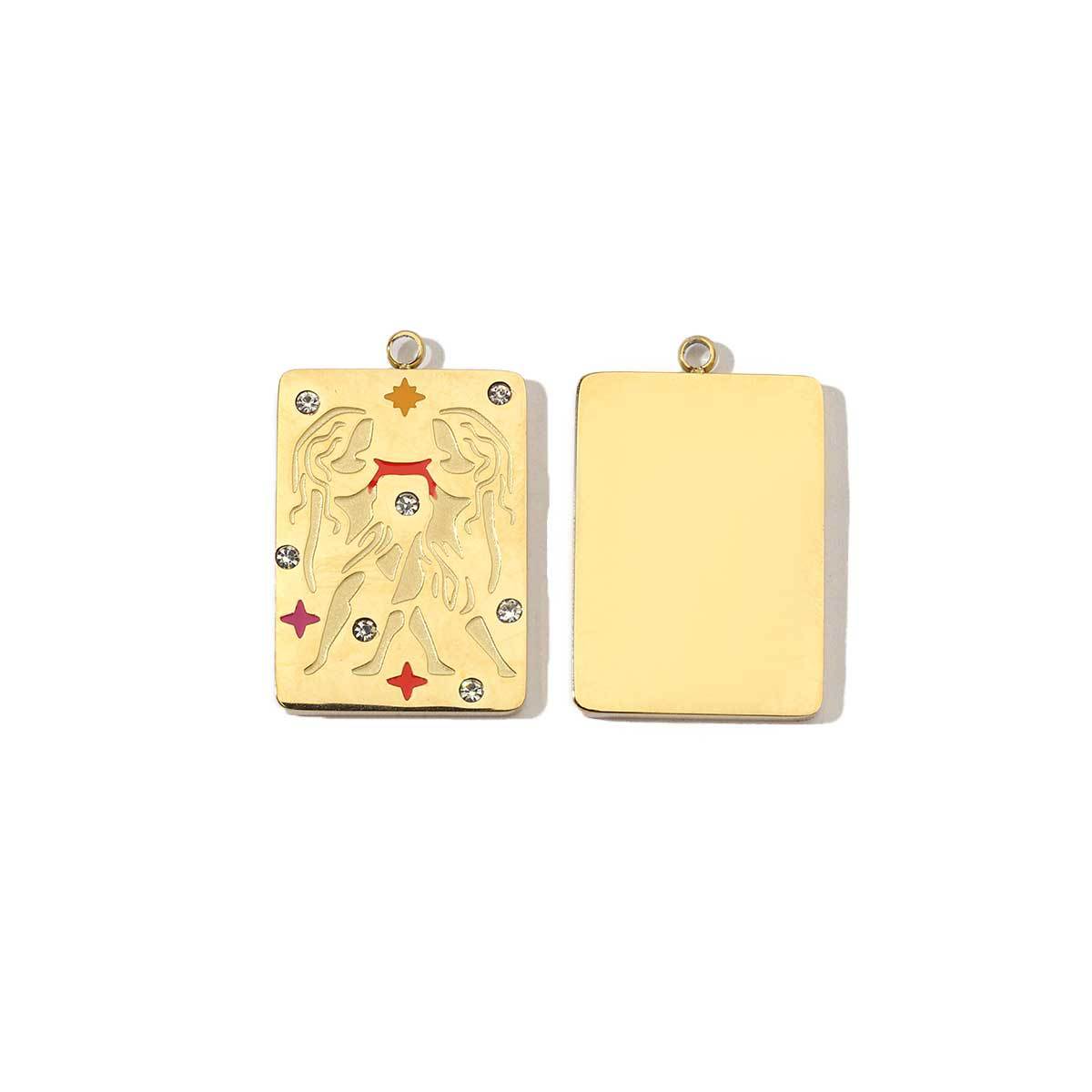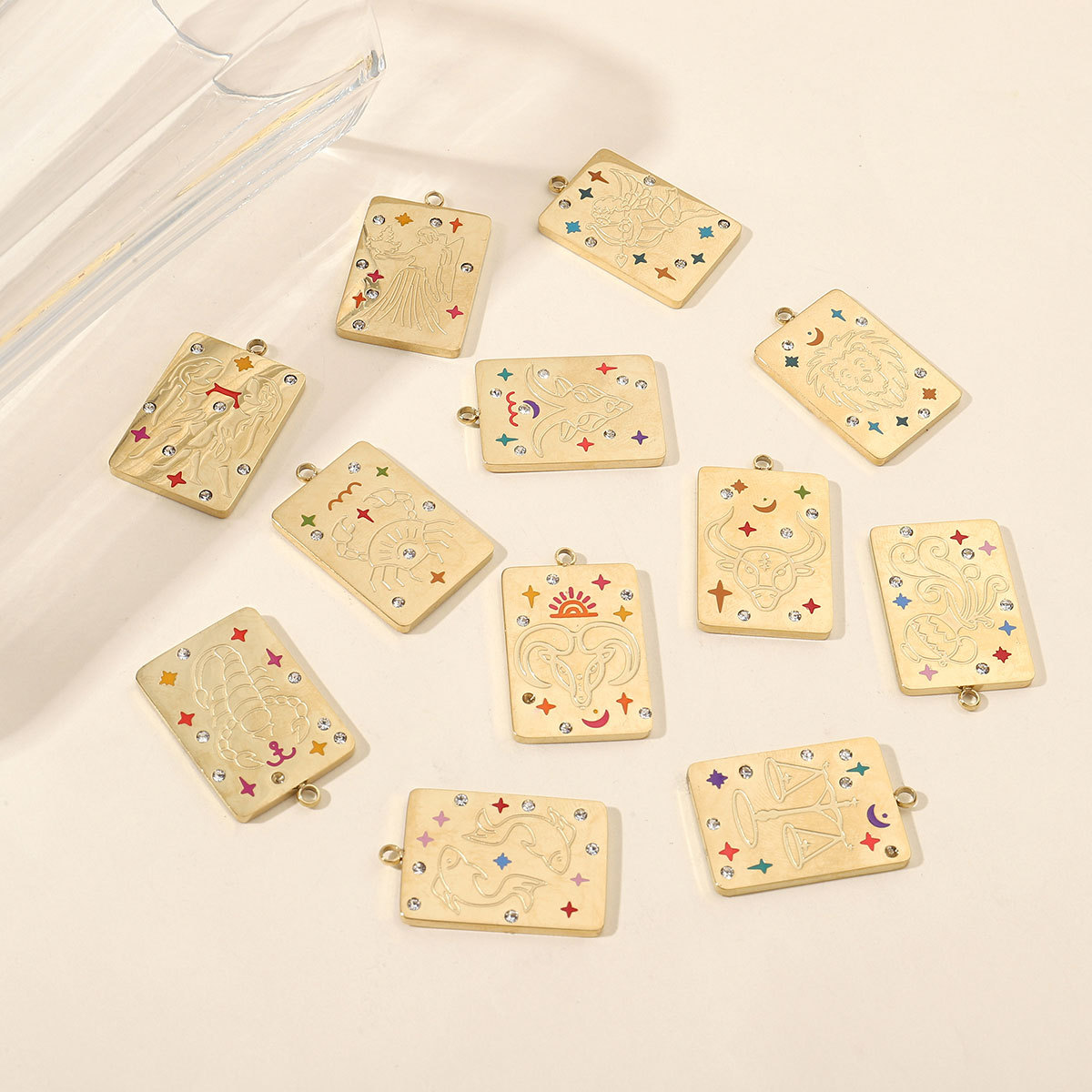 Edelstahl-Konstellation -Anhänger, 304 Edelstahl, 12 Zeichen des Sternzeichens, goldfarben plattiert, DIY & verschiedene Stile für Wahl & Emaille & mit Strass, 18x28mm, verkauft von PC