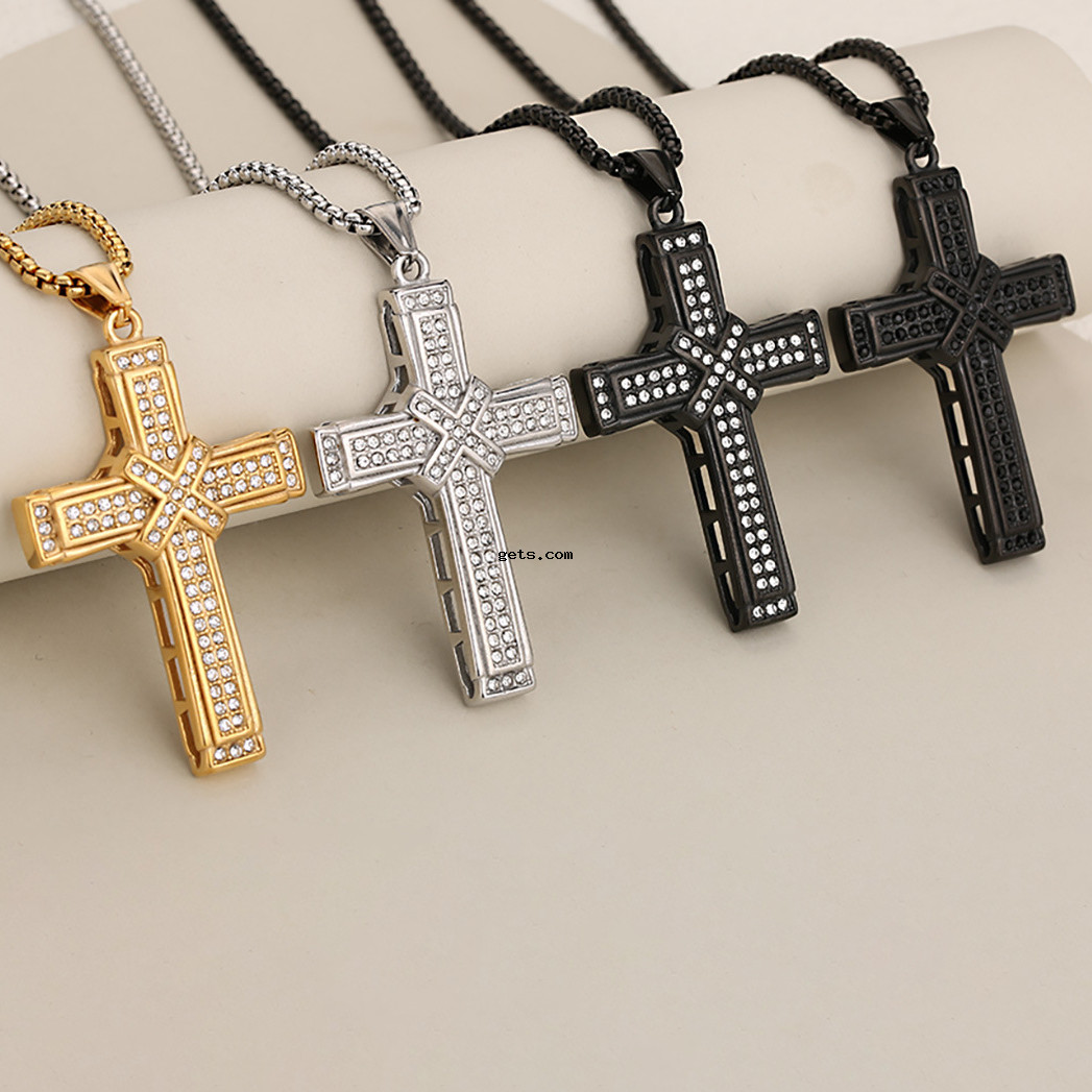- Edelstahl-Kreuz- Anhänger, 304 Edelstahl, DIY & mit Strass