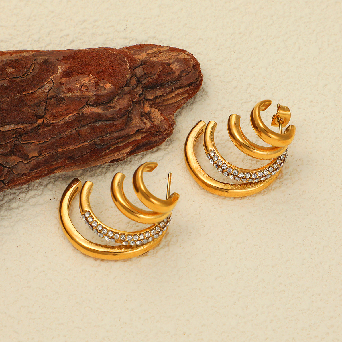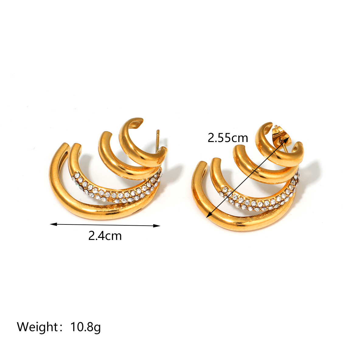 - Edelstahl Ohrringe, 304 Edelstahl, 18K vergoldet