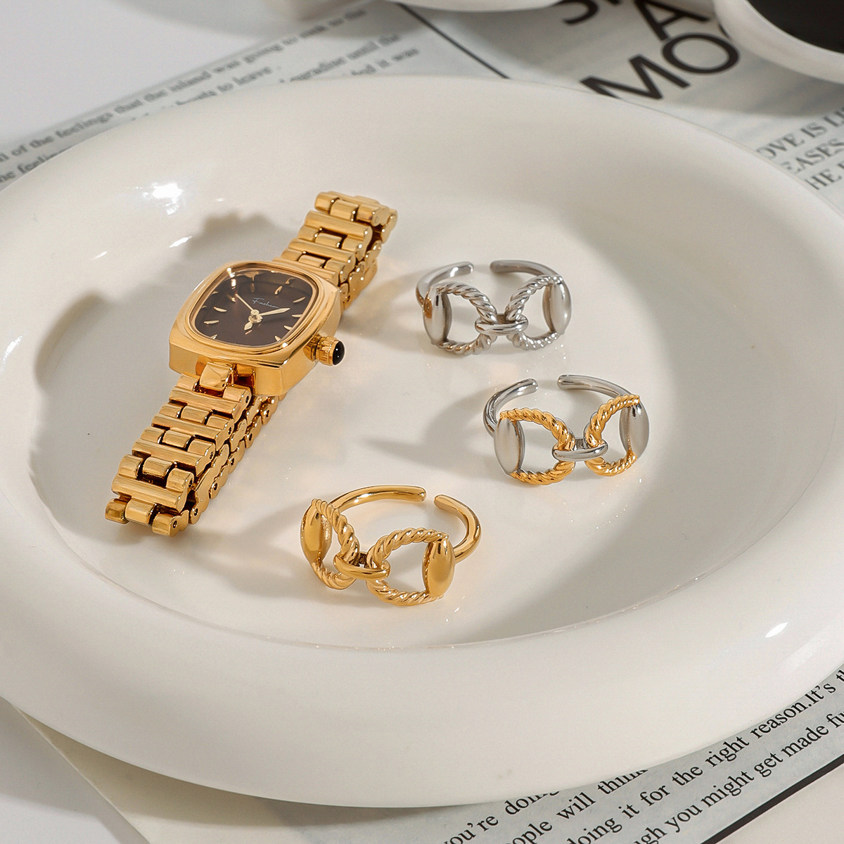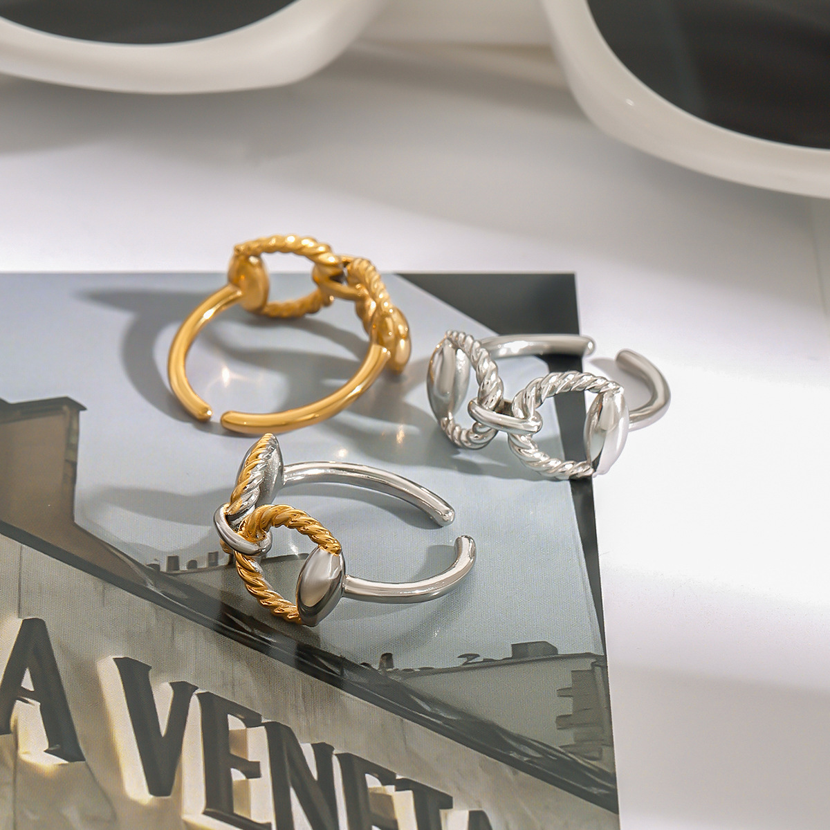 - 304 Edelstahl Fingerring, 18K vergoldet, unisex & verschiedene Größen vorhanden & verschiedene Stile für Wahl
