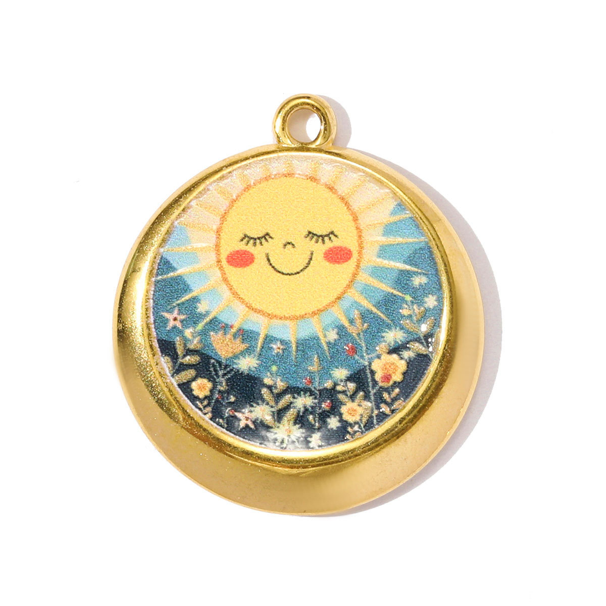 - Edelstahl Schmuck Anhänger, rund, mit Strass