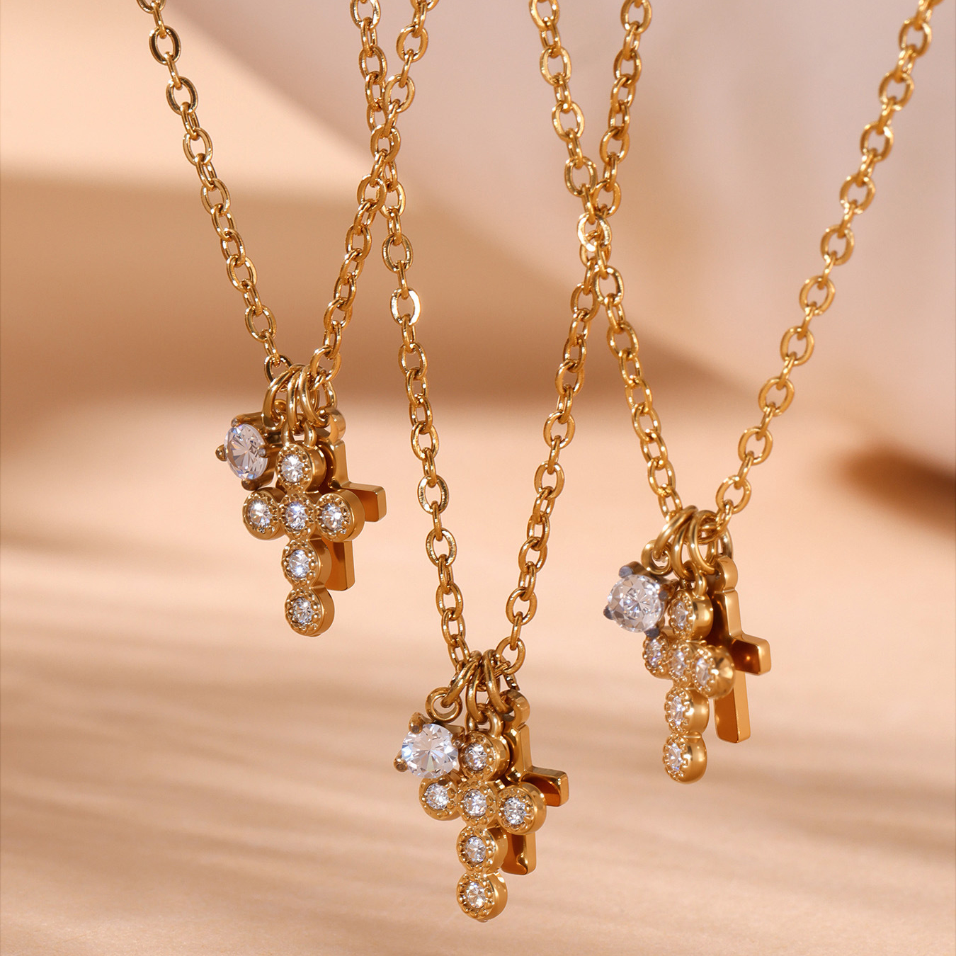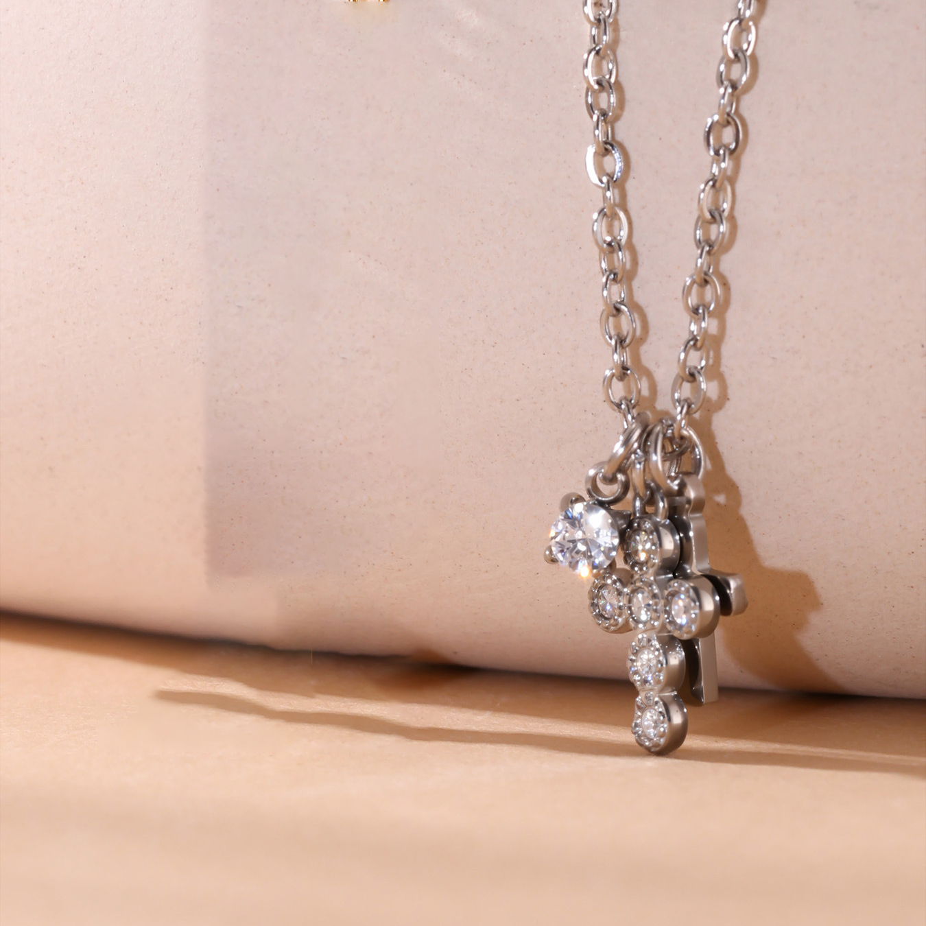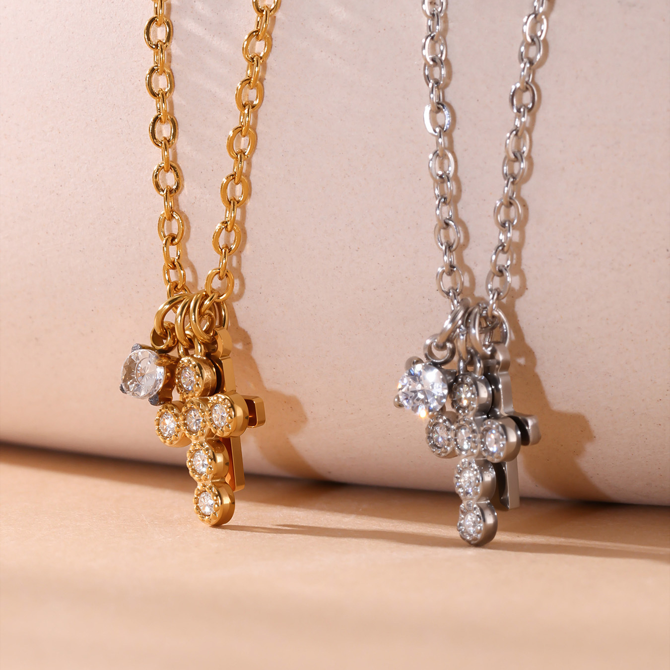 Edelstahl Schmuck Halskette, 304 Edelstahl, Kreuz, plattiert, Modeschmuck & Micro pave Zirkonia & für Frau, keine, verkauft von PC