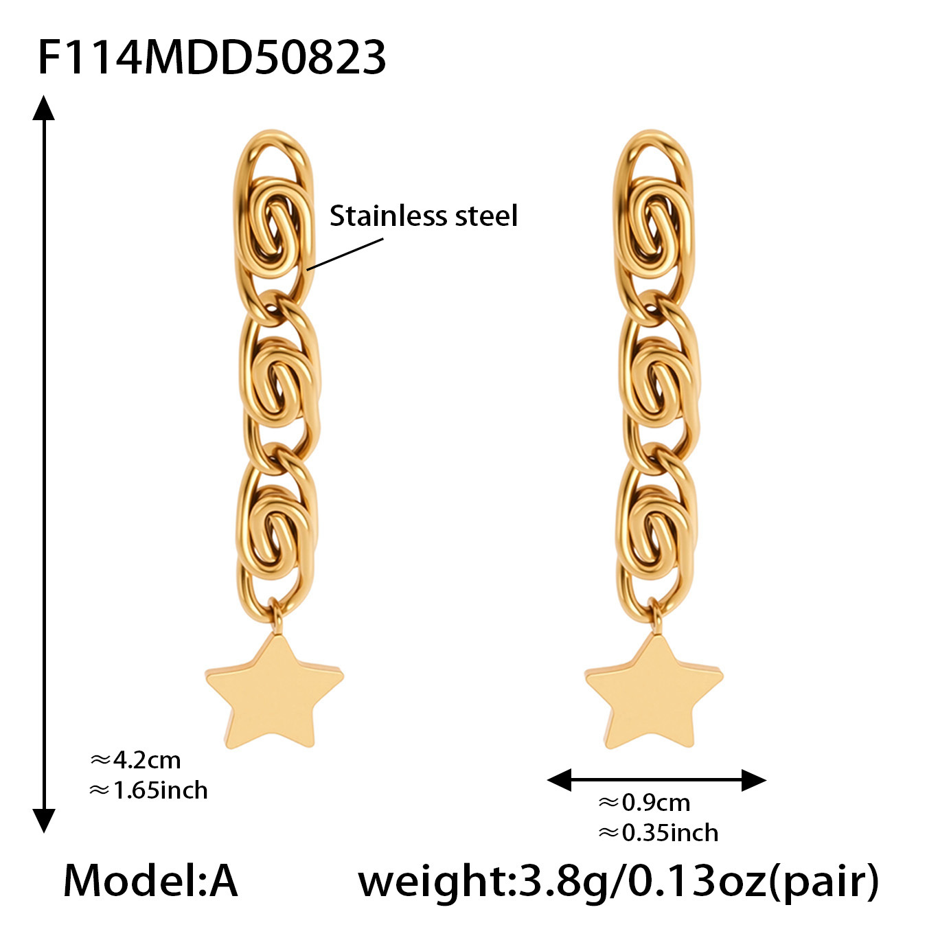 Edelstahl Tropfen Ohrring, 316 L Edelstahl, Nummer 8, 18K vergoldet, für Frau, 29x80mm, verkauft von Paar