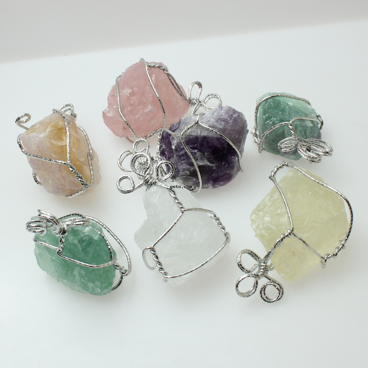 Edelstein Anhänger Schmuck, mit Zinklegierung, Unregelmäßige, DIY & verschiedenen Materialien für die Wahl, pendant size 30-40mm, verkauft von PC